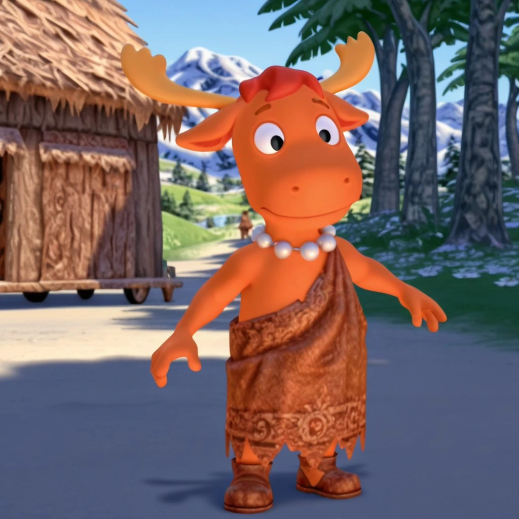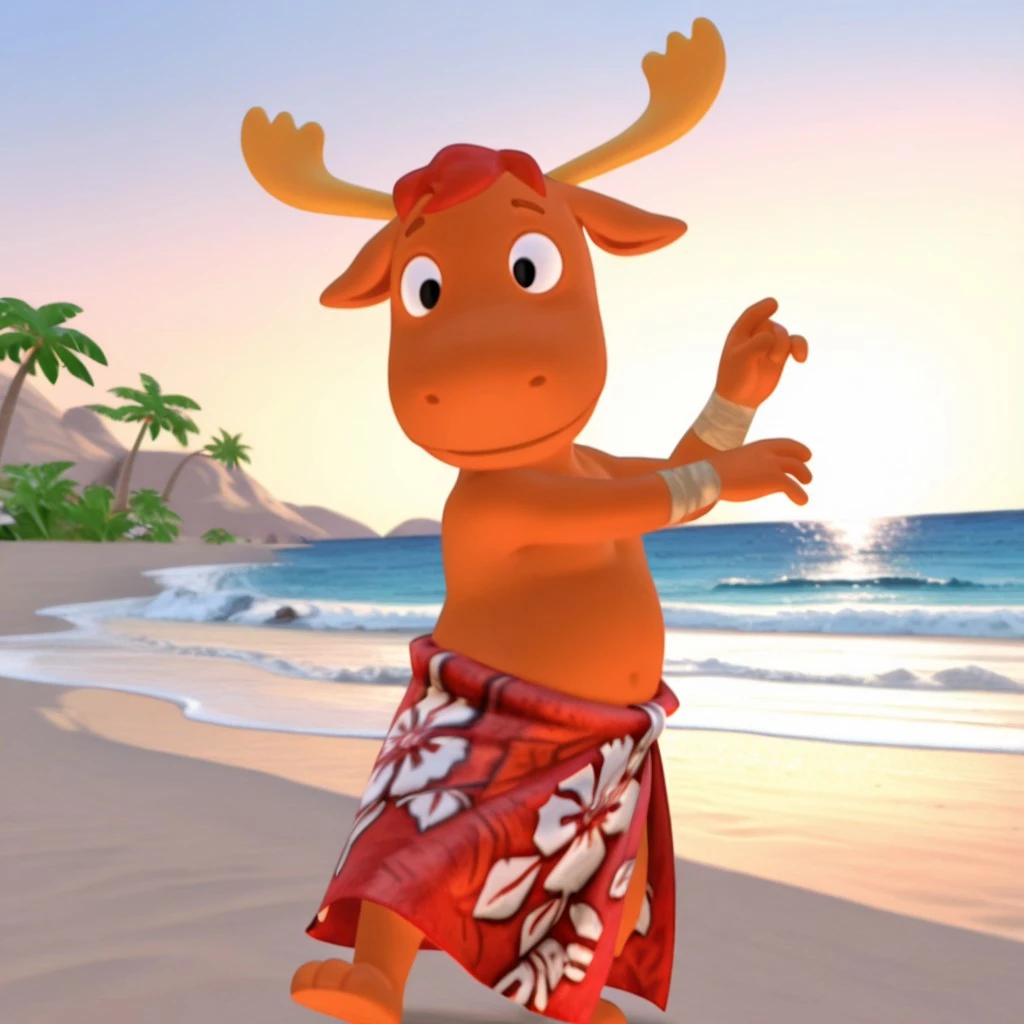 Tyronebyv2il, anthro, male, orange fur, black eyes, antlers, red hair, blue and orange striped shirt
