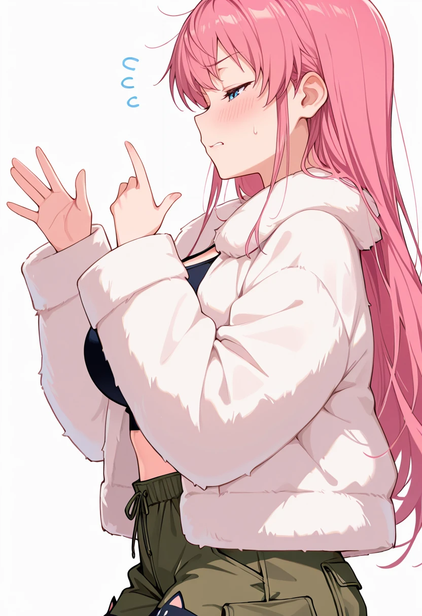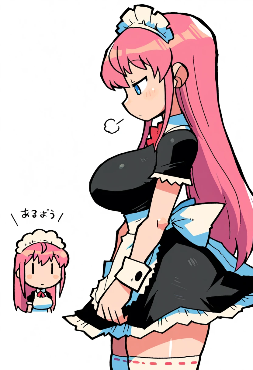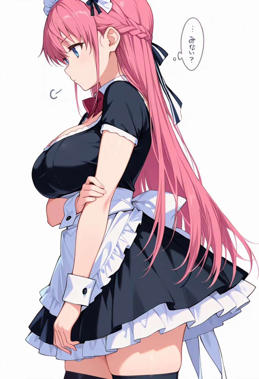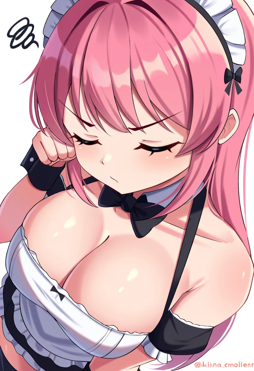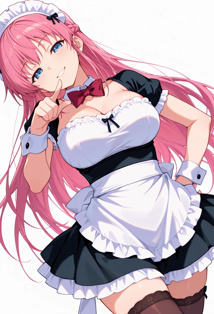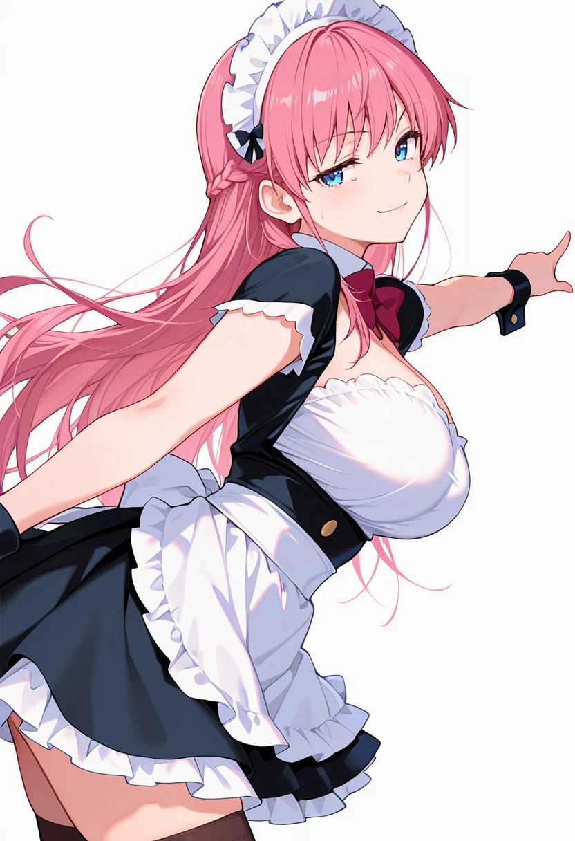 akina_cnr, 1girl, pink hair, long hair, blue eyes, large breasts, 👗Signature Outfit