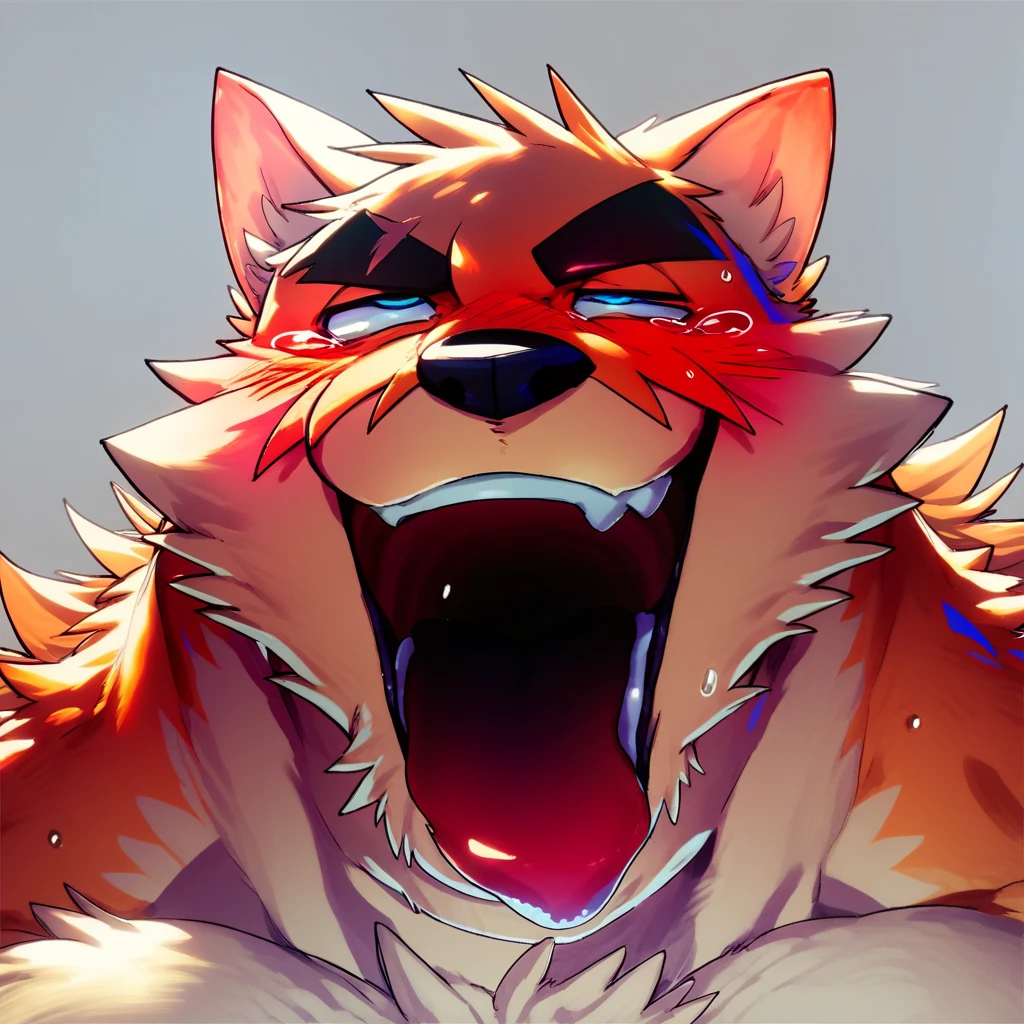 furry male, solo, 1boy, orange fur, muscular, blue eyes