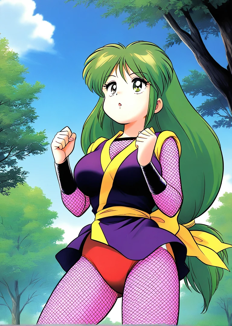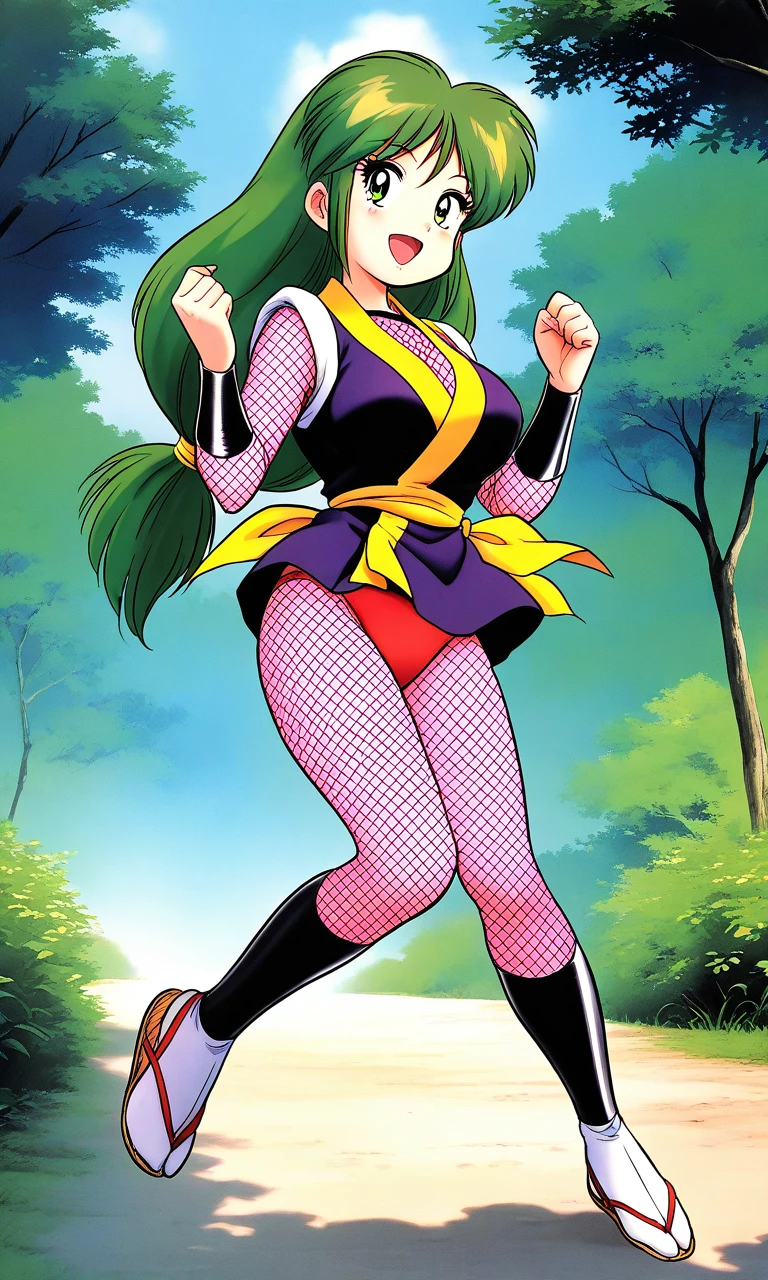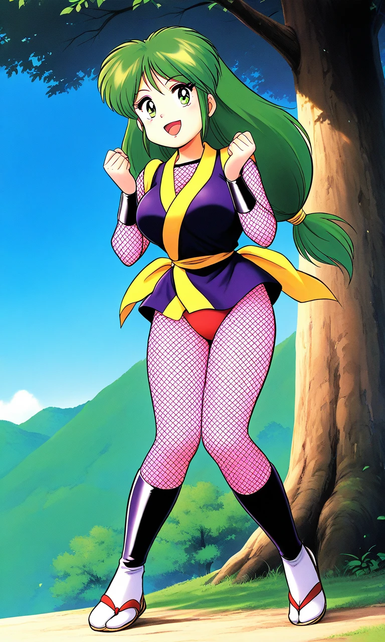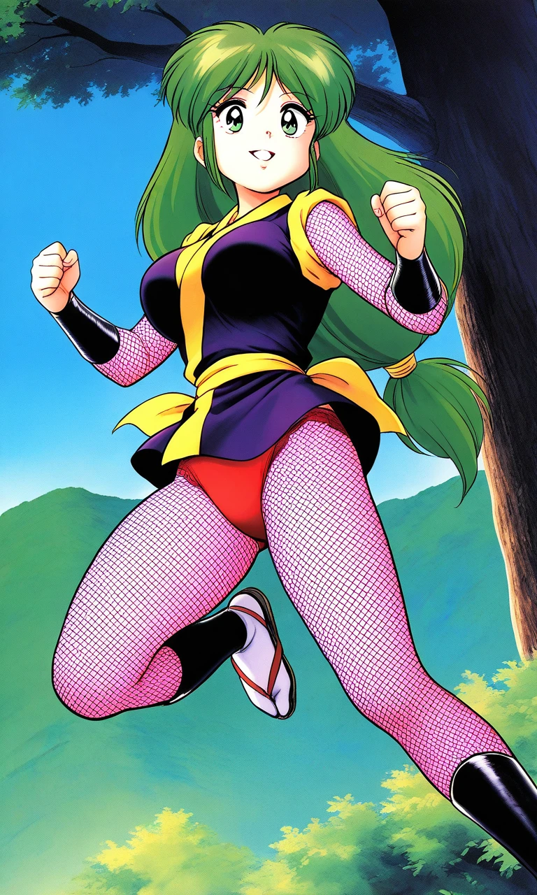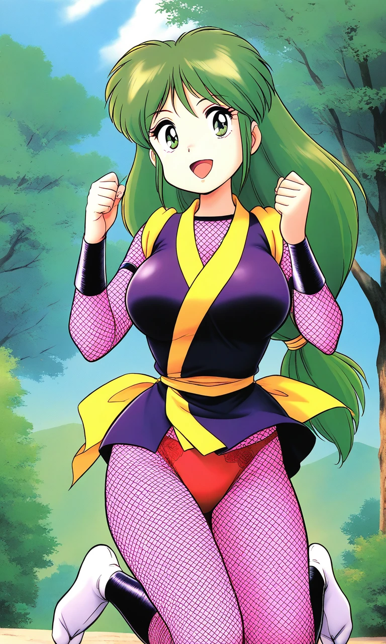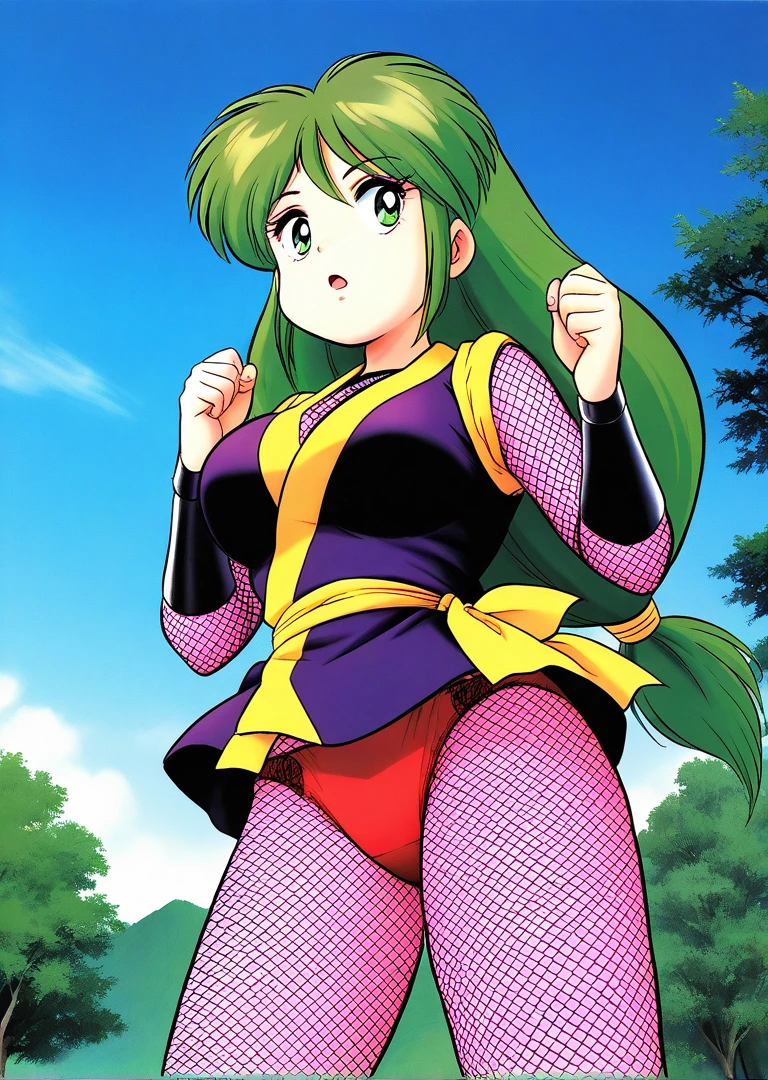 short kimono,Yellow sash, ninja, japanese clothes, fishnet bodysuit, red panties,