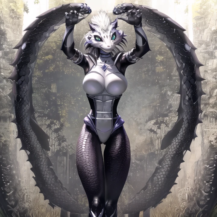 "furry female, 1girl, robot furry, claws, gloves, scales, solo, solo focus,"