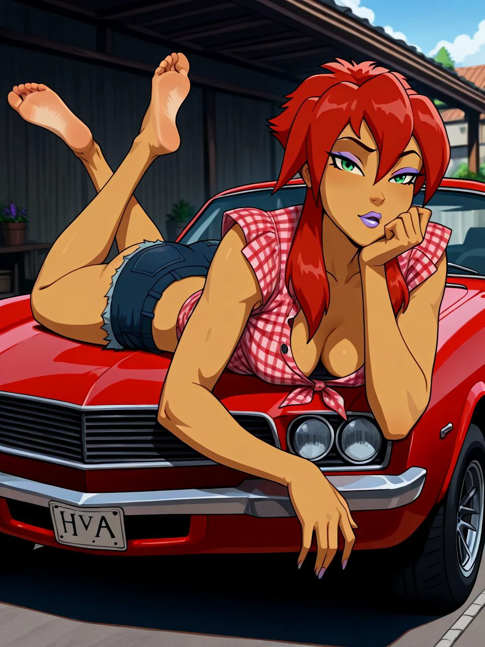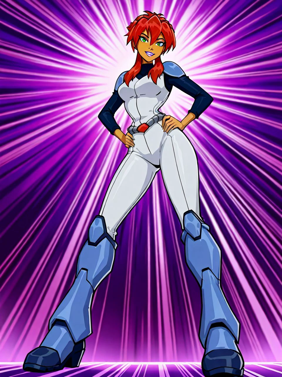 Originally from the year 3037, Kiva was the original pilot for the titular MEGAS XLR mecha, planning to send the giant robot back 2 years as an ace in the hole in Earth's war against the villainous Glorft army. However, due to a time travel mishap, the machine was instead sent to the worst place possible; to the early 2000s, into the hands of a goofball pop culture ?????? slacker from New Jersey and his dumb little buddy. Trained on a number of screengrabs from season 2 of the short-lived series.