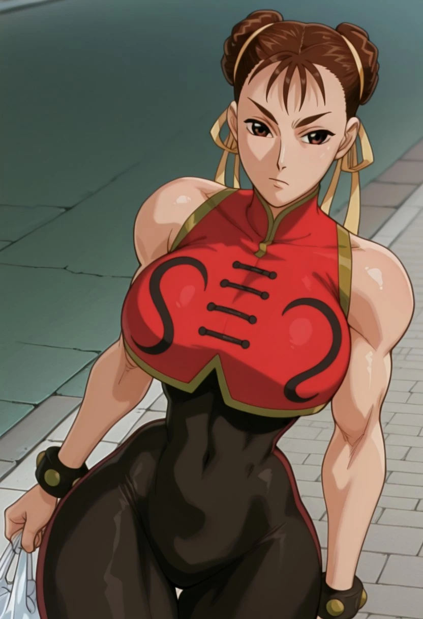 black , gold trim, red vest, sleeveless vest, bare shoulders, black cuffs, Chinese clothes,
