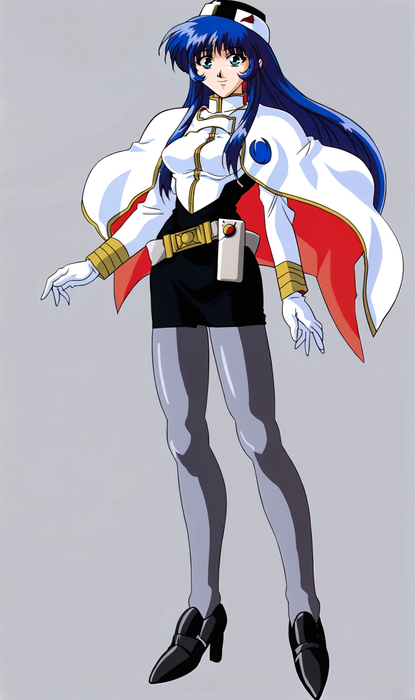 Outfit 1-'white military uniform, long sleeves, capelet, hat, belt, black skirt, pantyhose, shoes, white gloves,'