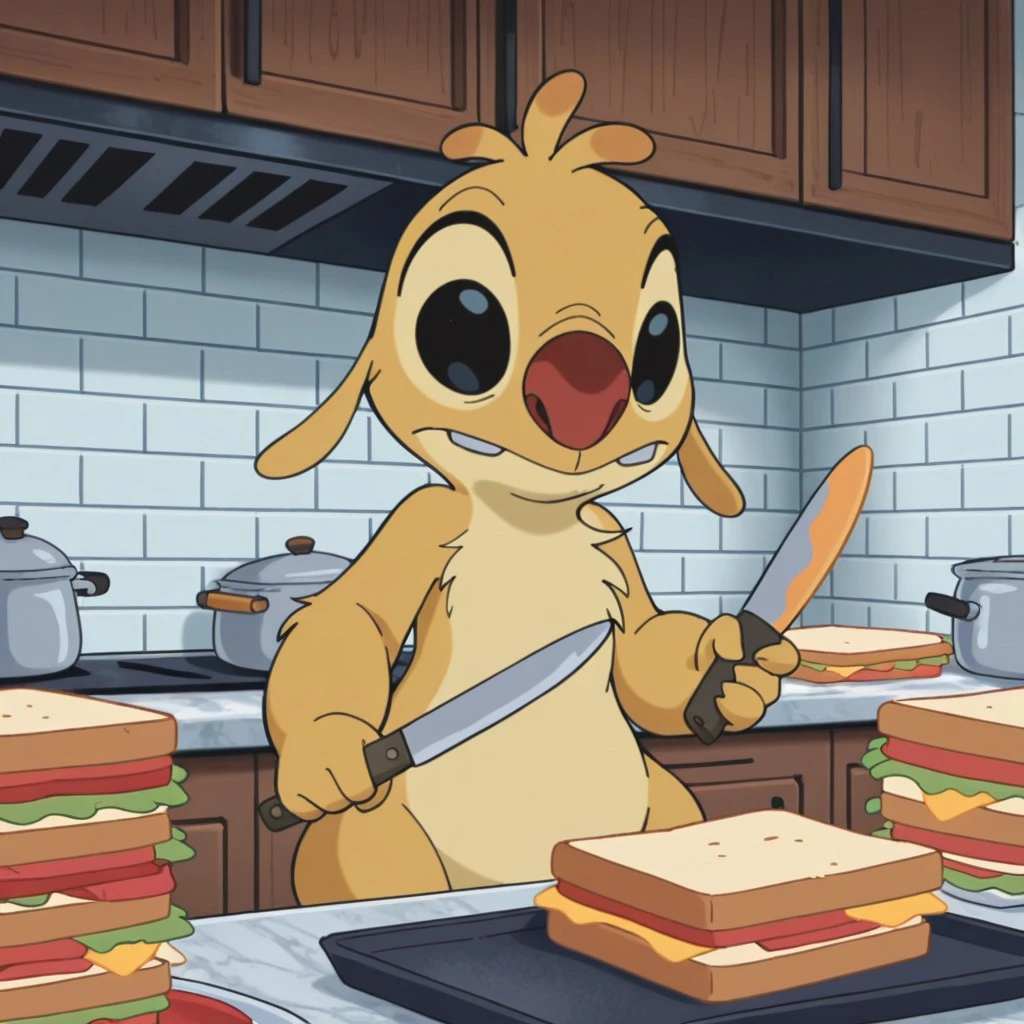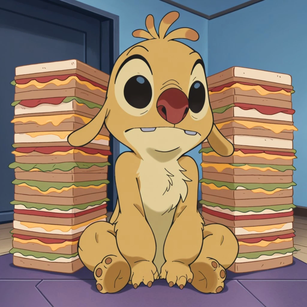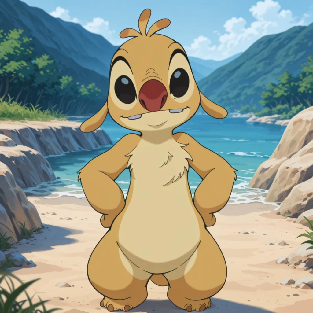 Reubenil, semi-anthro, male, yellow fur, two-tone fur, black eyes