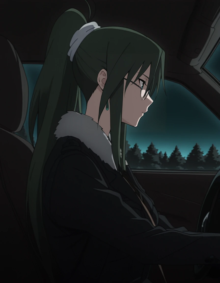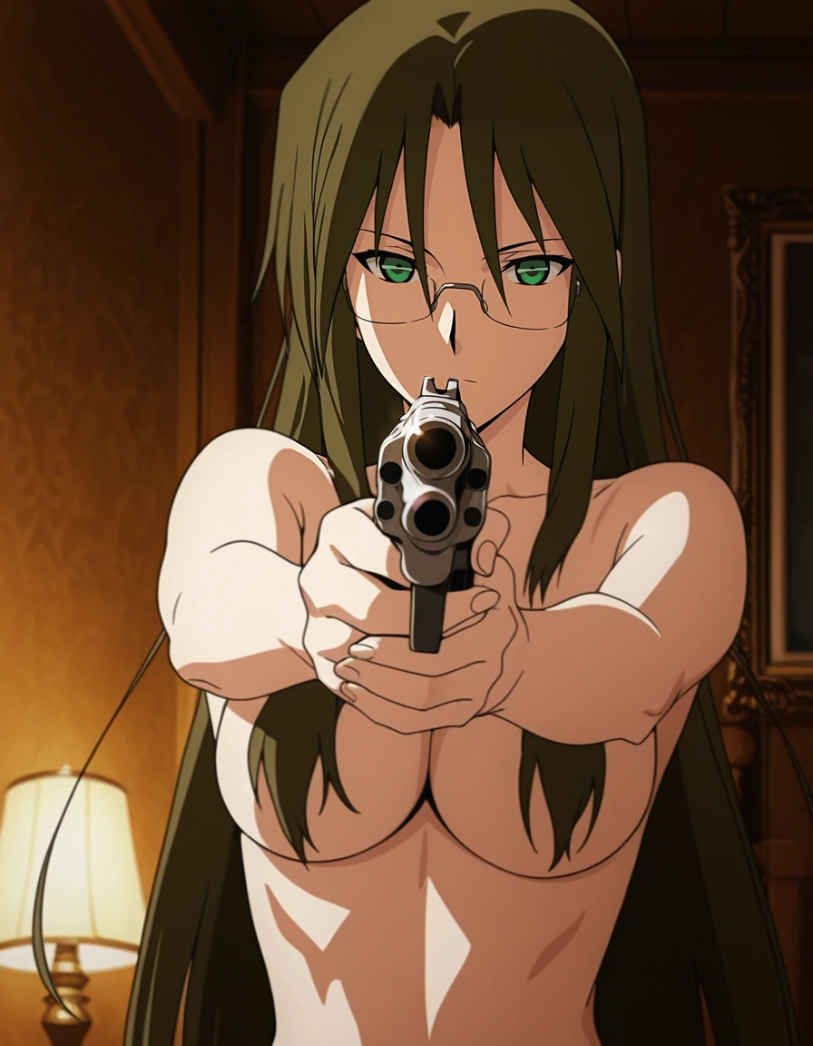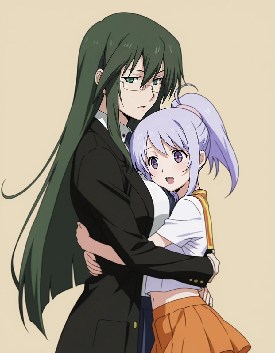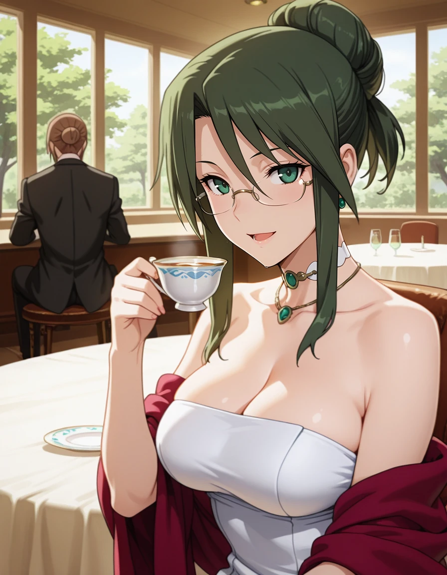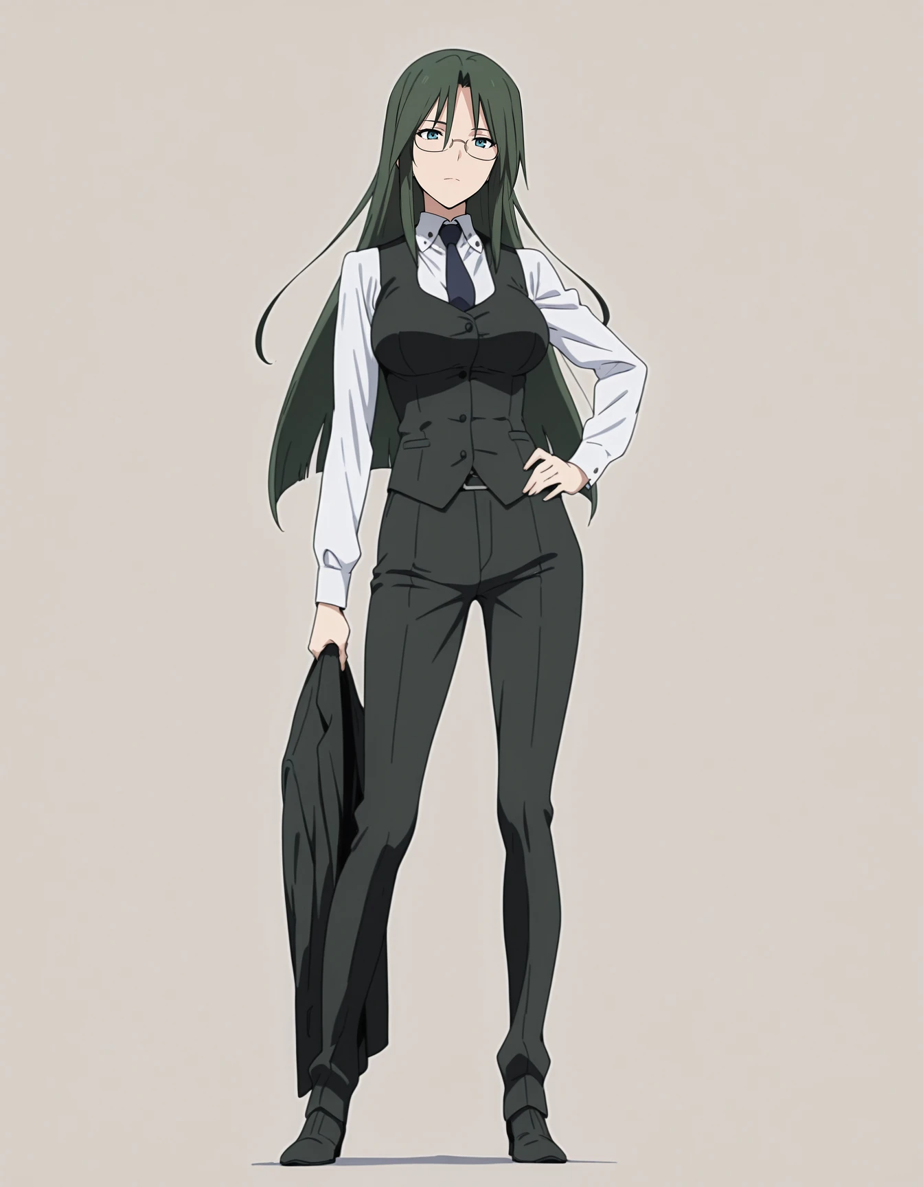 mai_rin_asougi,mature_female,long_hair,green_hair,glasses,formal,suit,pant_suit,necktie