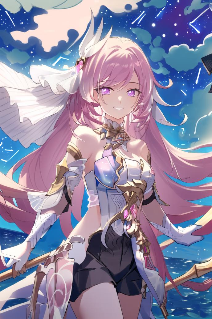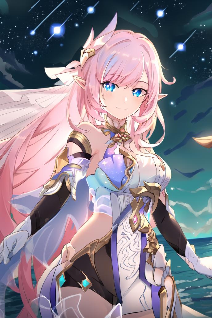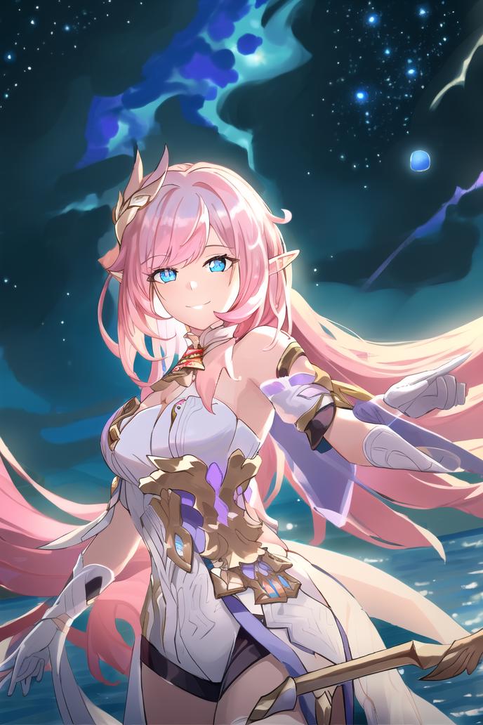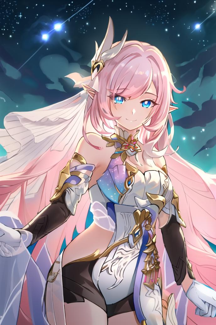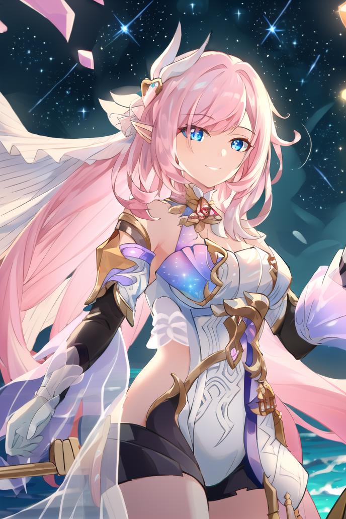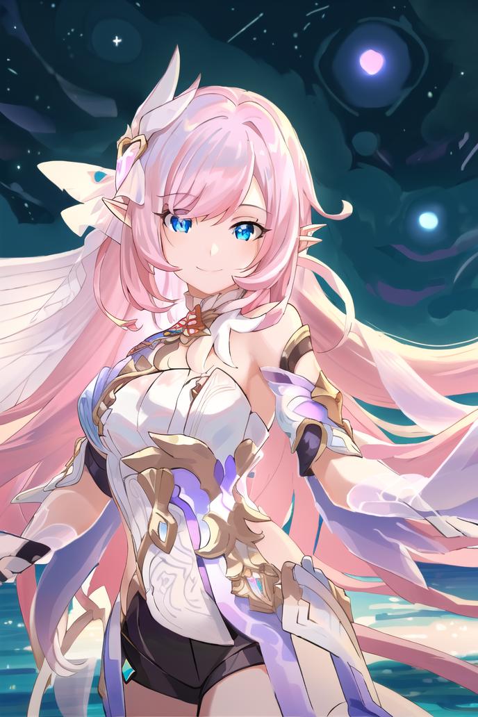 加上elysia \(miss pink elf\) \(honkai impact\), ( pink hair:1.2),( pointy ears:1.2), (blue eyes:1.2), 更好一些