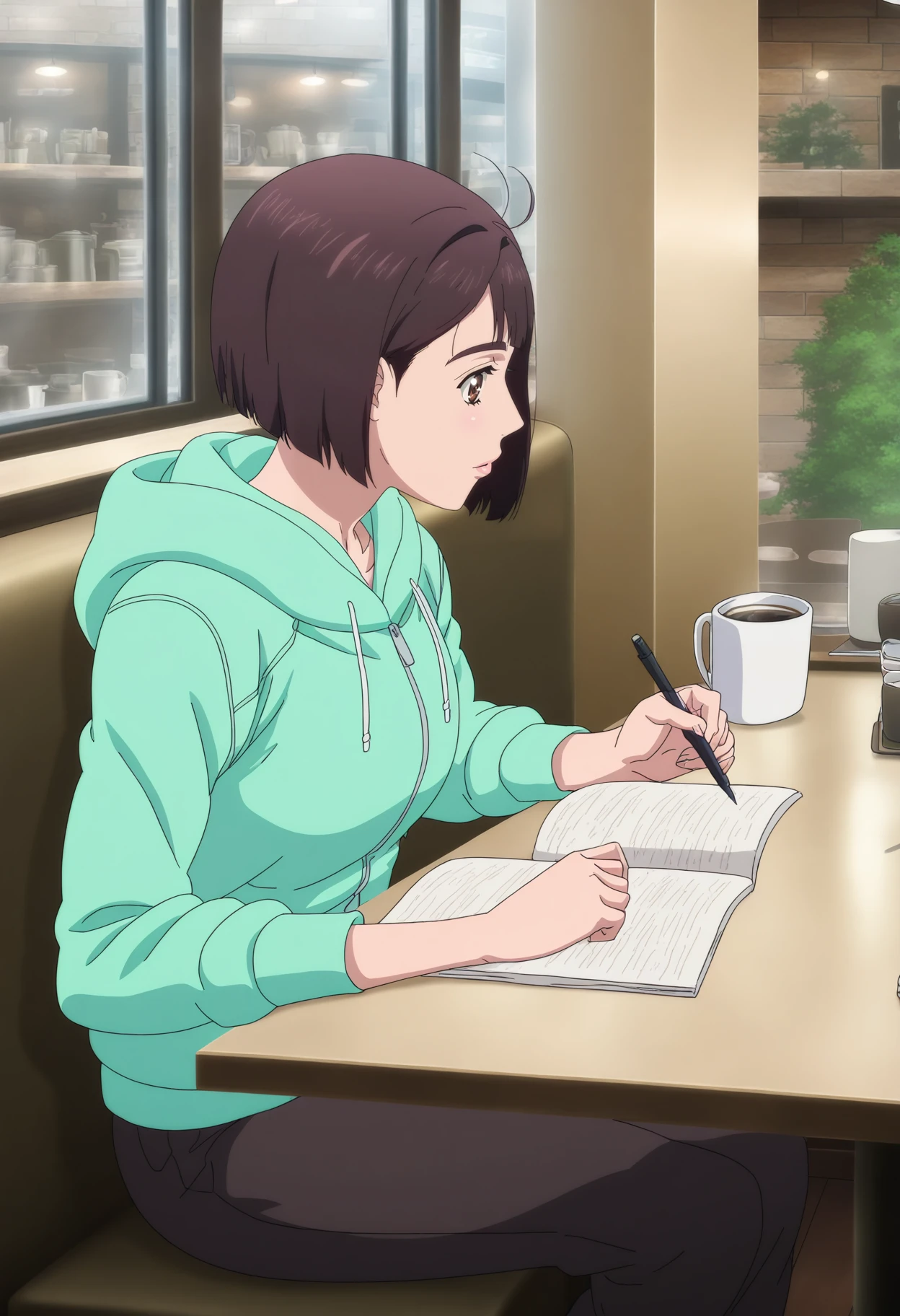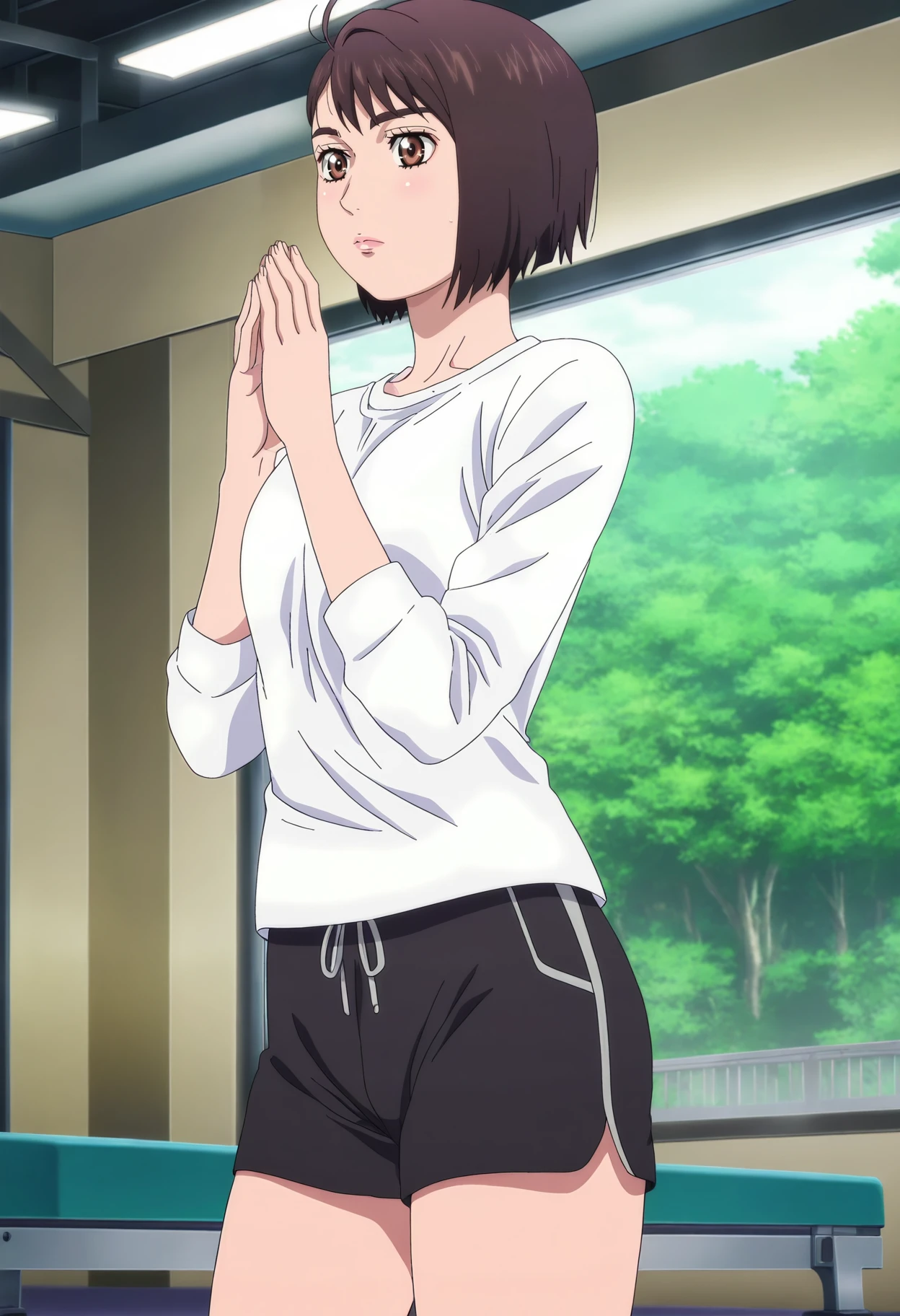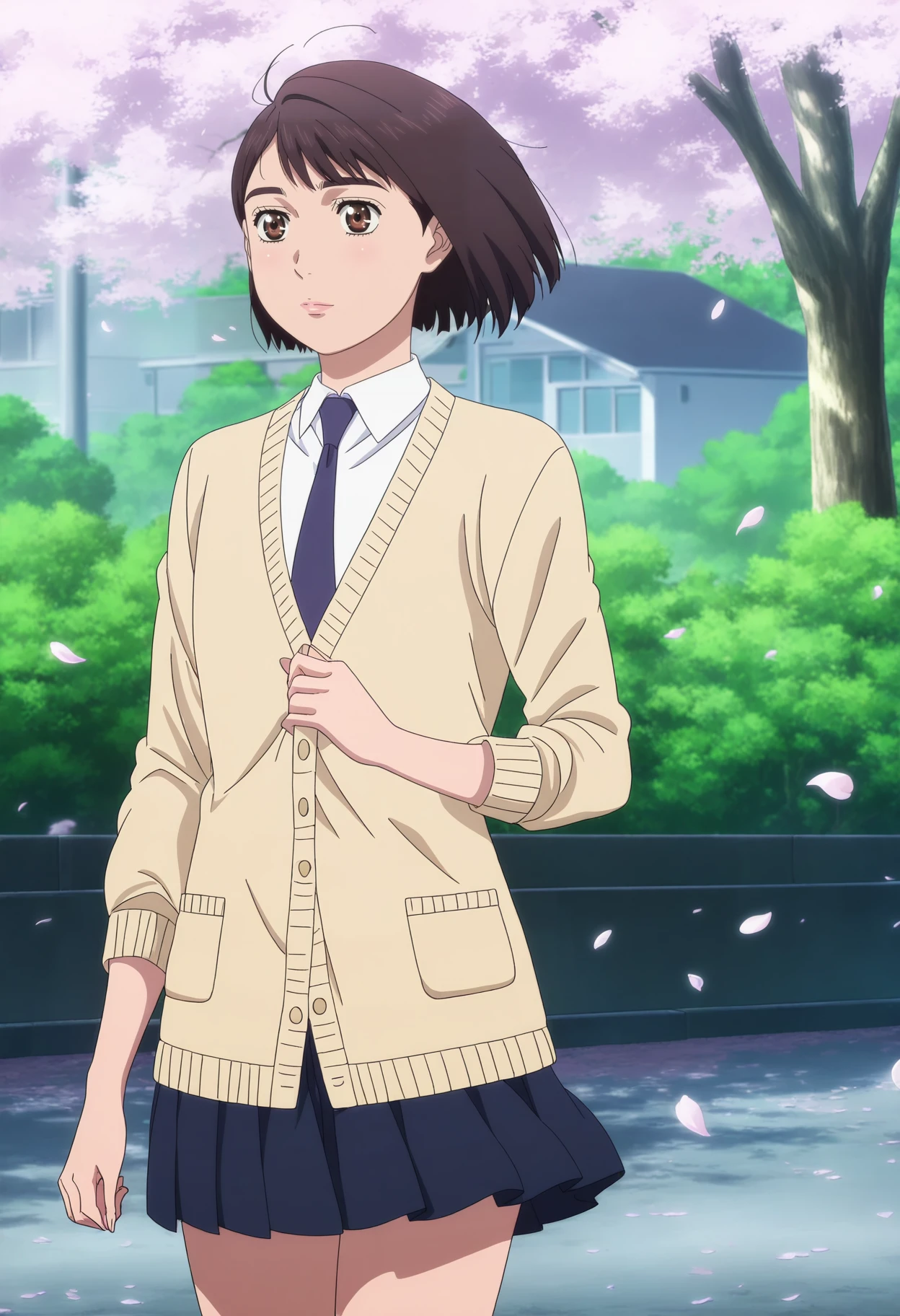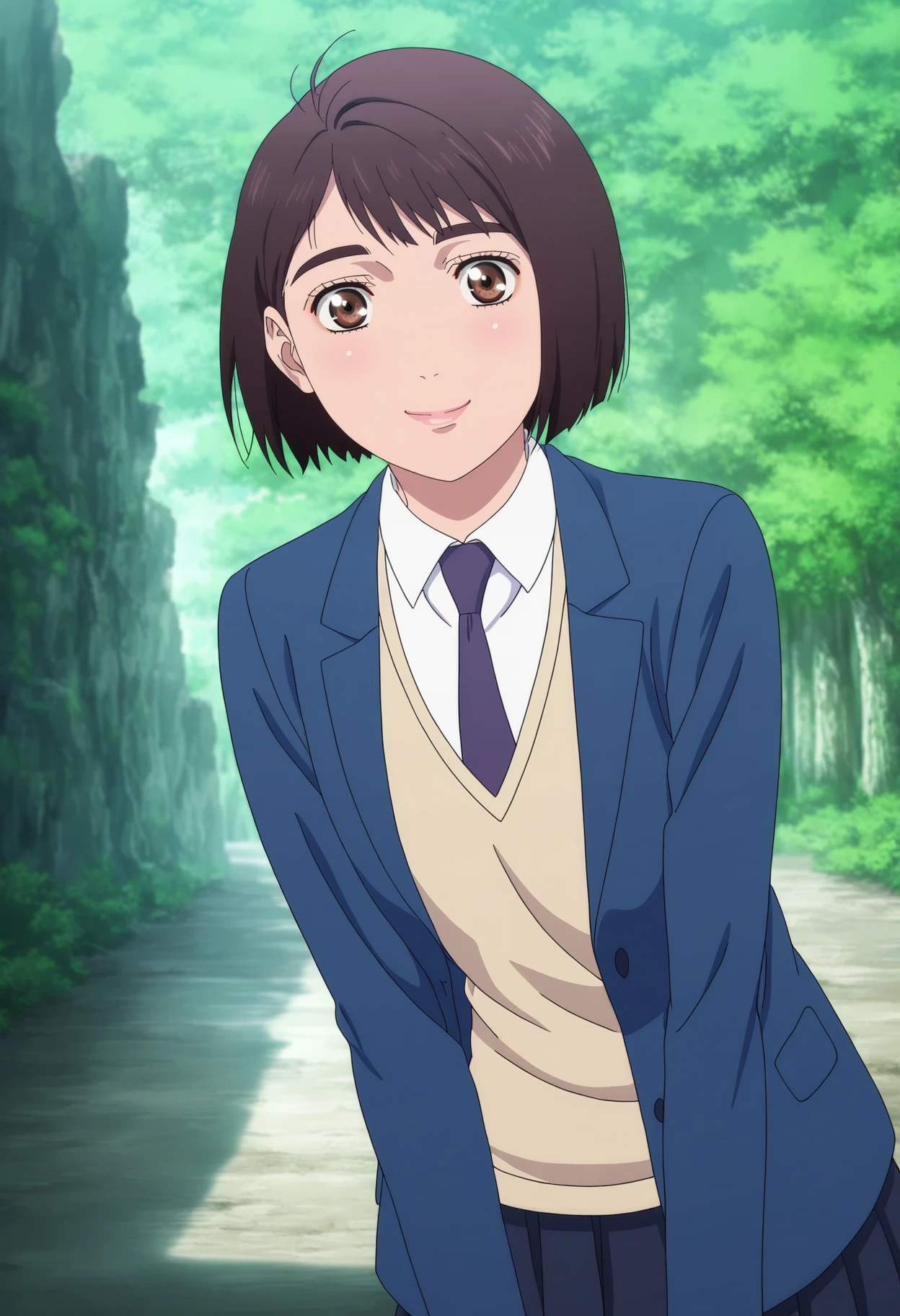 Saionji Ren,1girl,solo,brown hair,short hair,bob cut,brown eyes,lips,