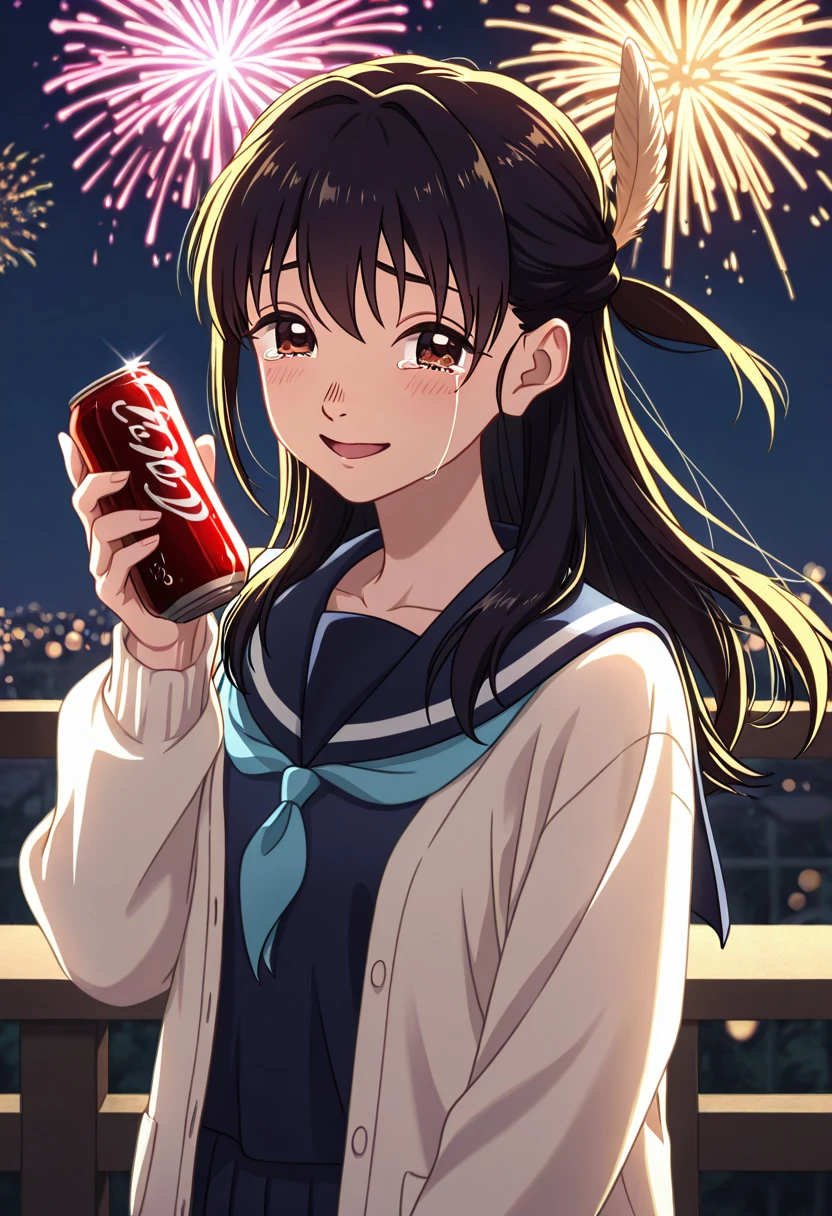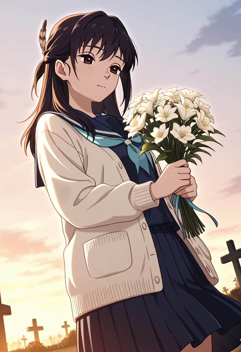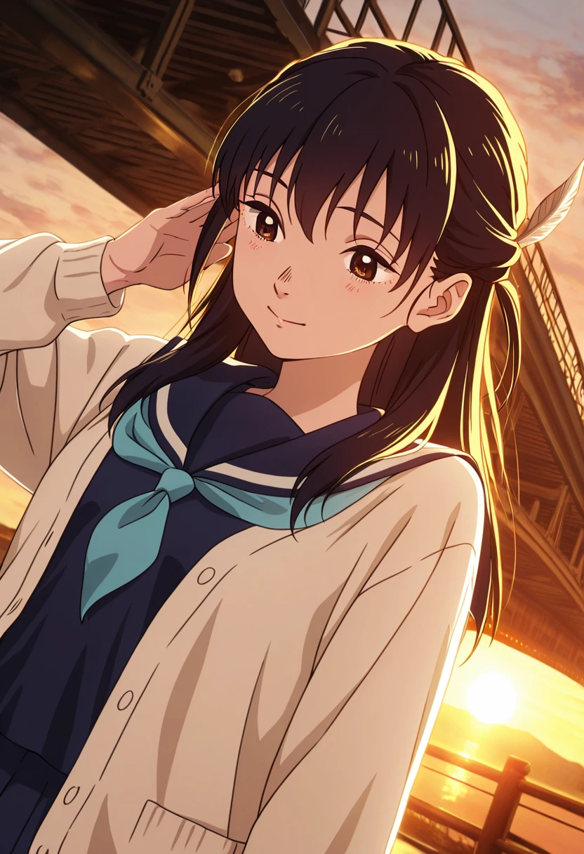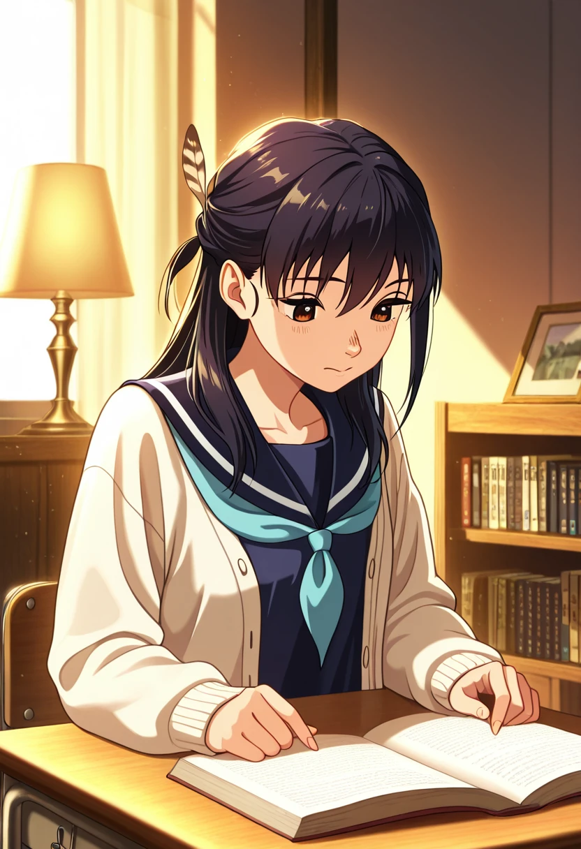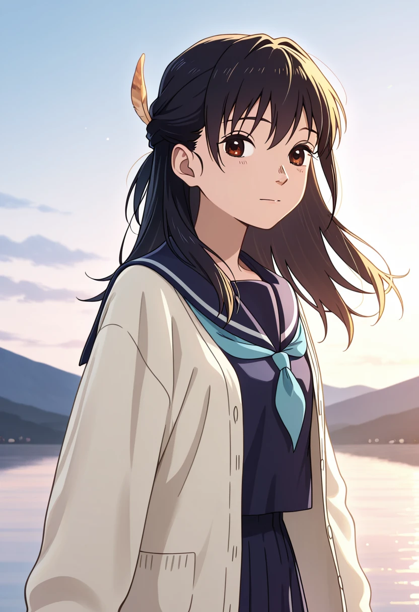 school uniform, serafuku, blue neckerchief, blue sailor collar, blue shirt, white cardigan