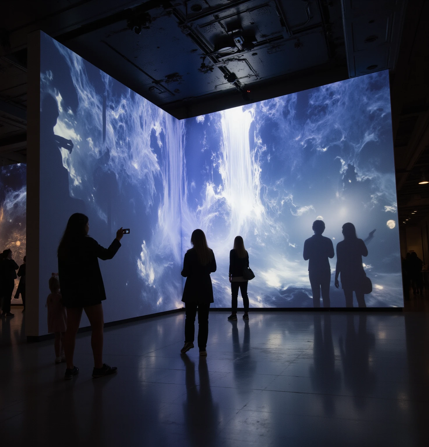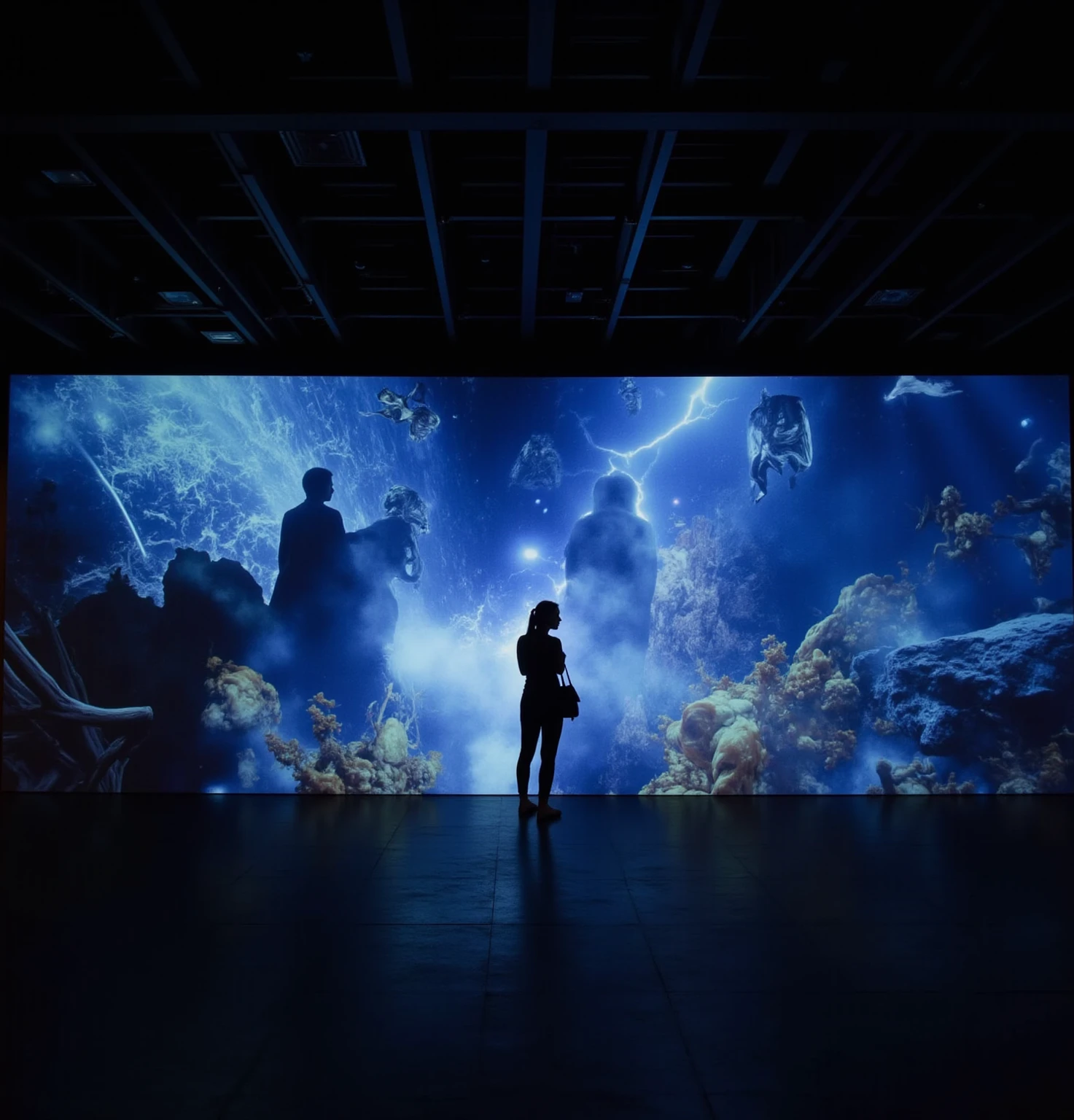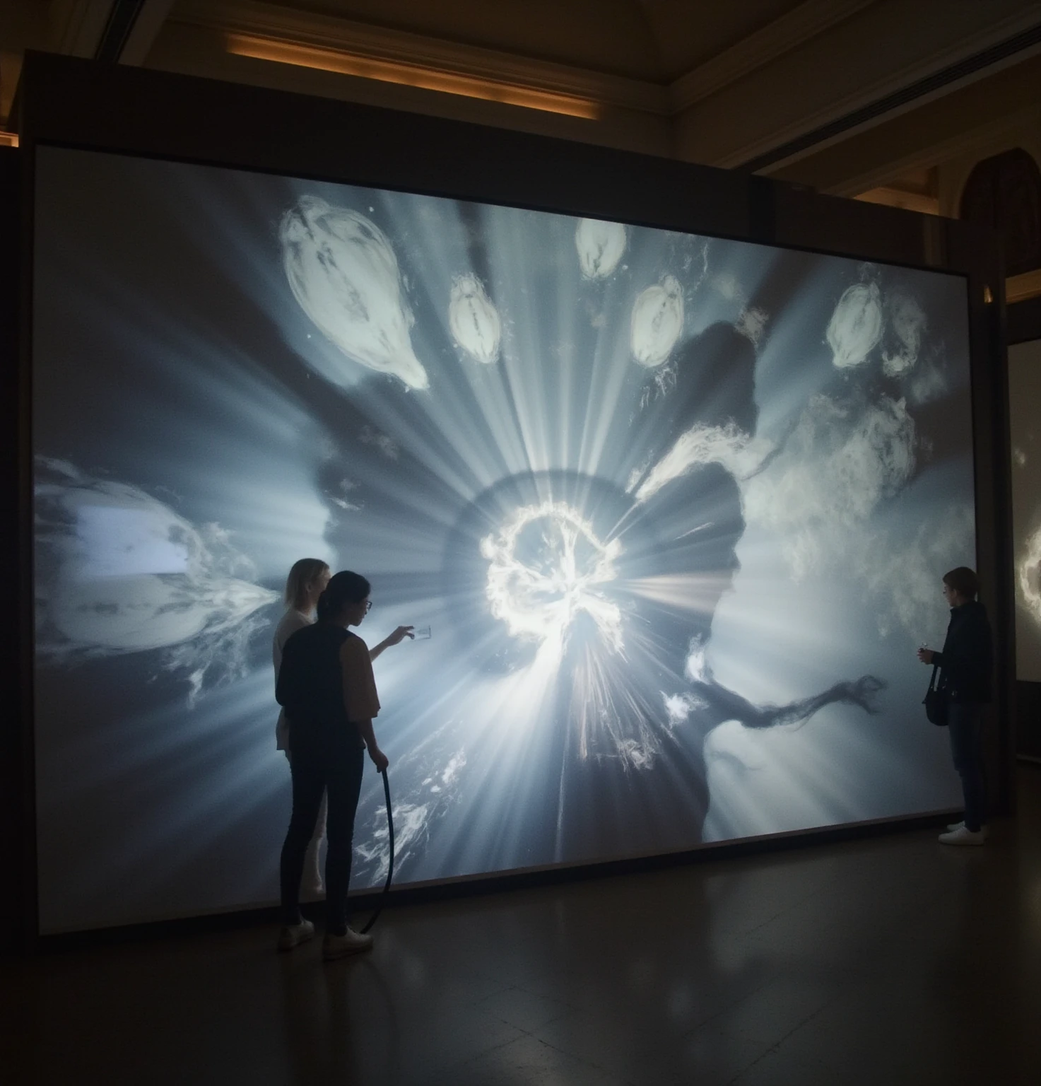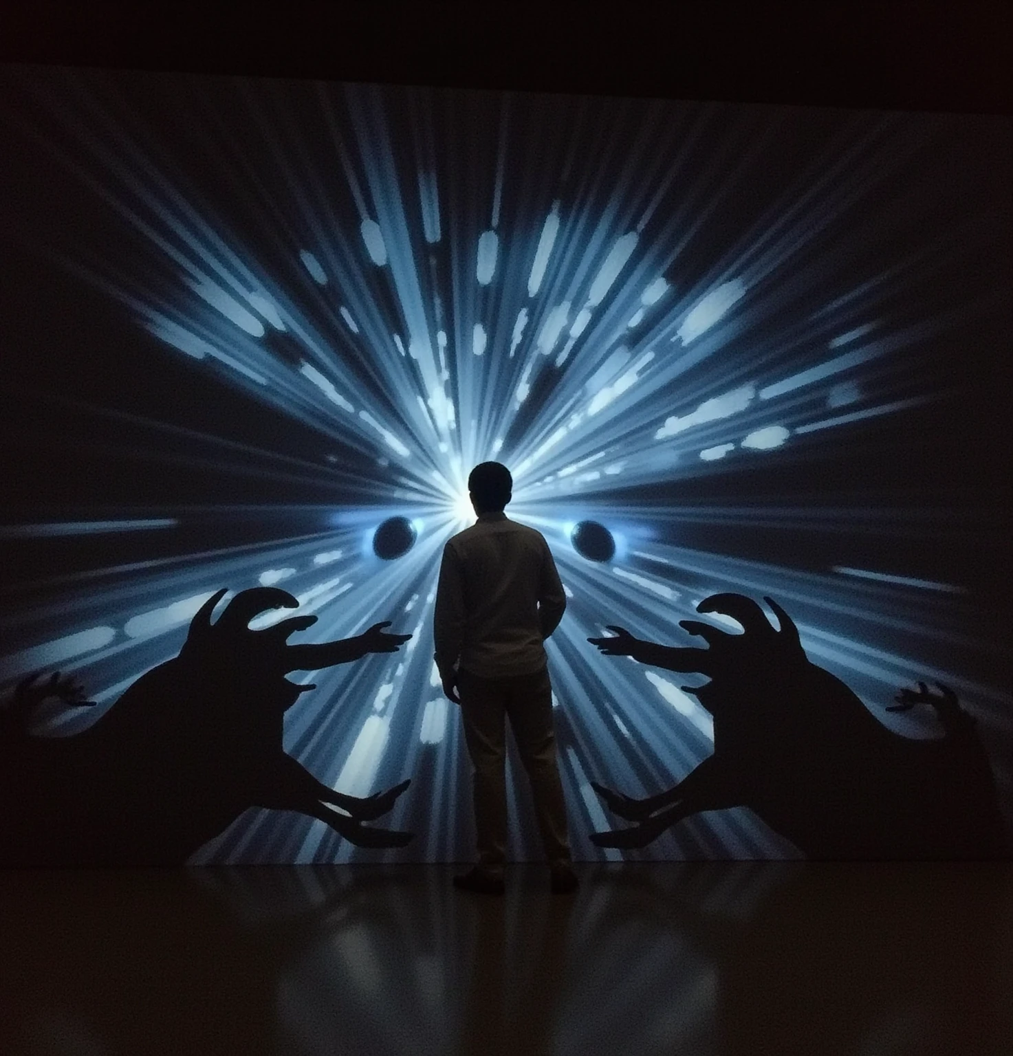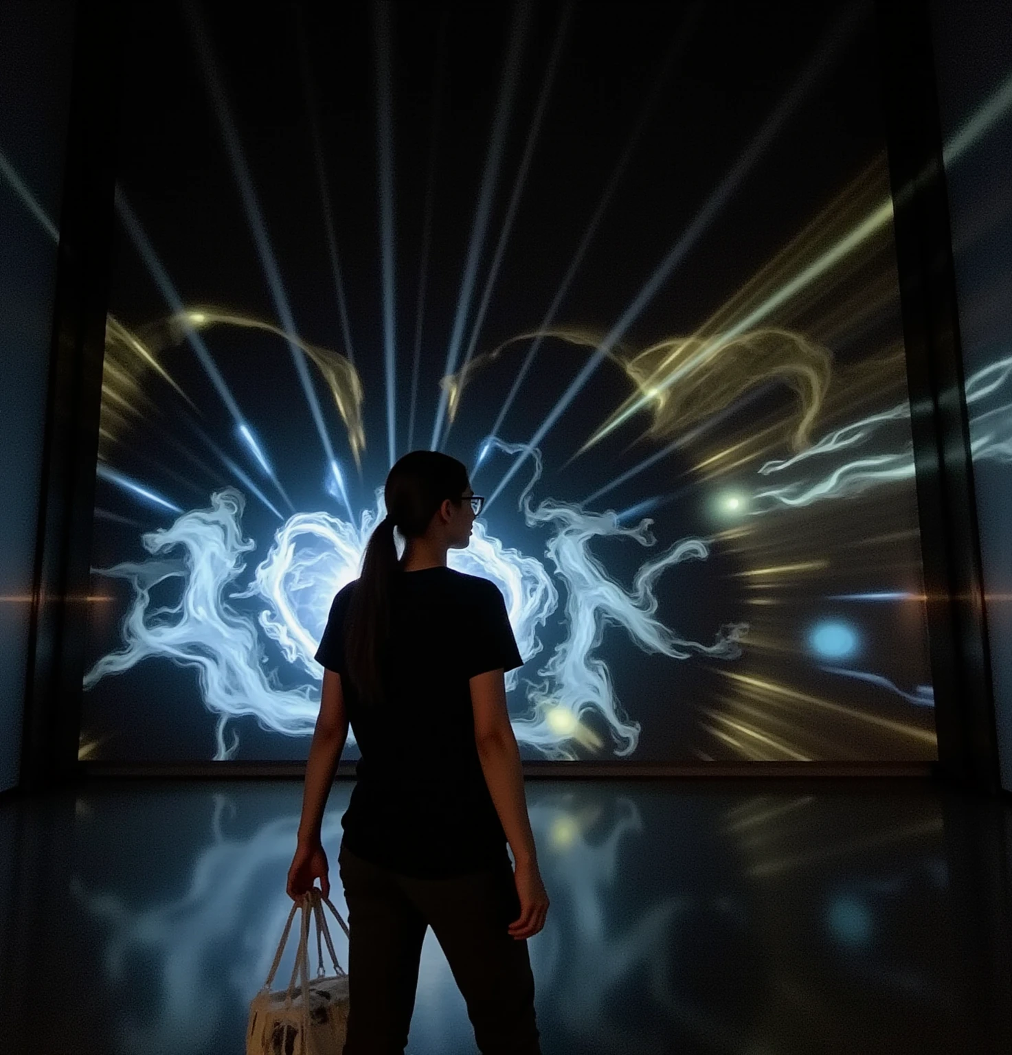 彼女の最高のアート展を開催する、光と影のインタラクティブ、巨大な壁画です。