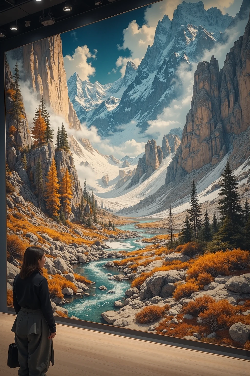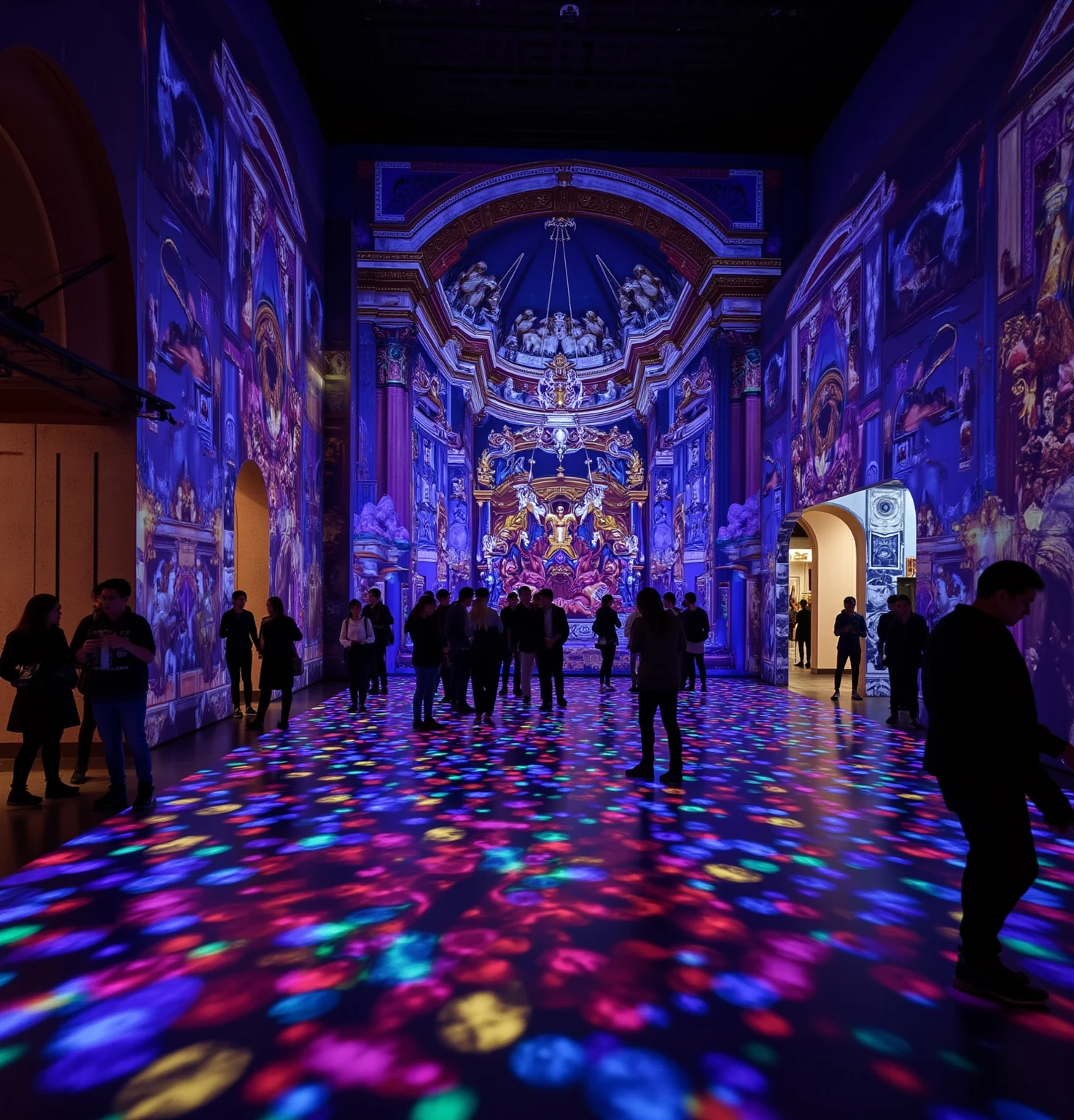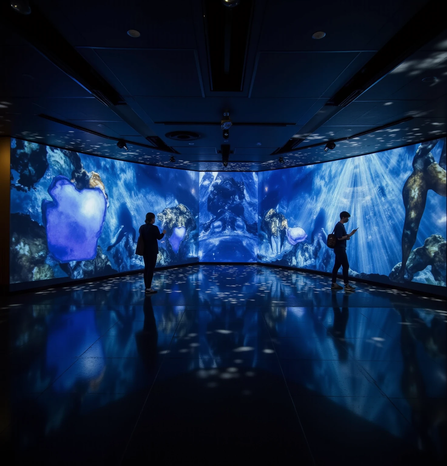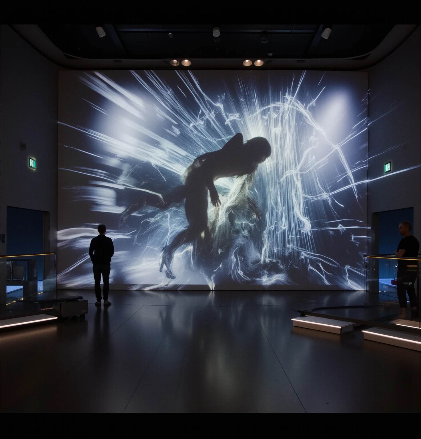 彼女の最高のアート展を開催する、光と影のインタラクティブ、巨大な壁画です。