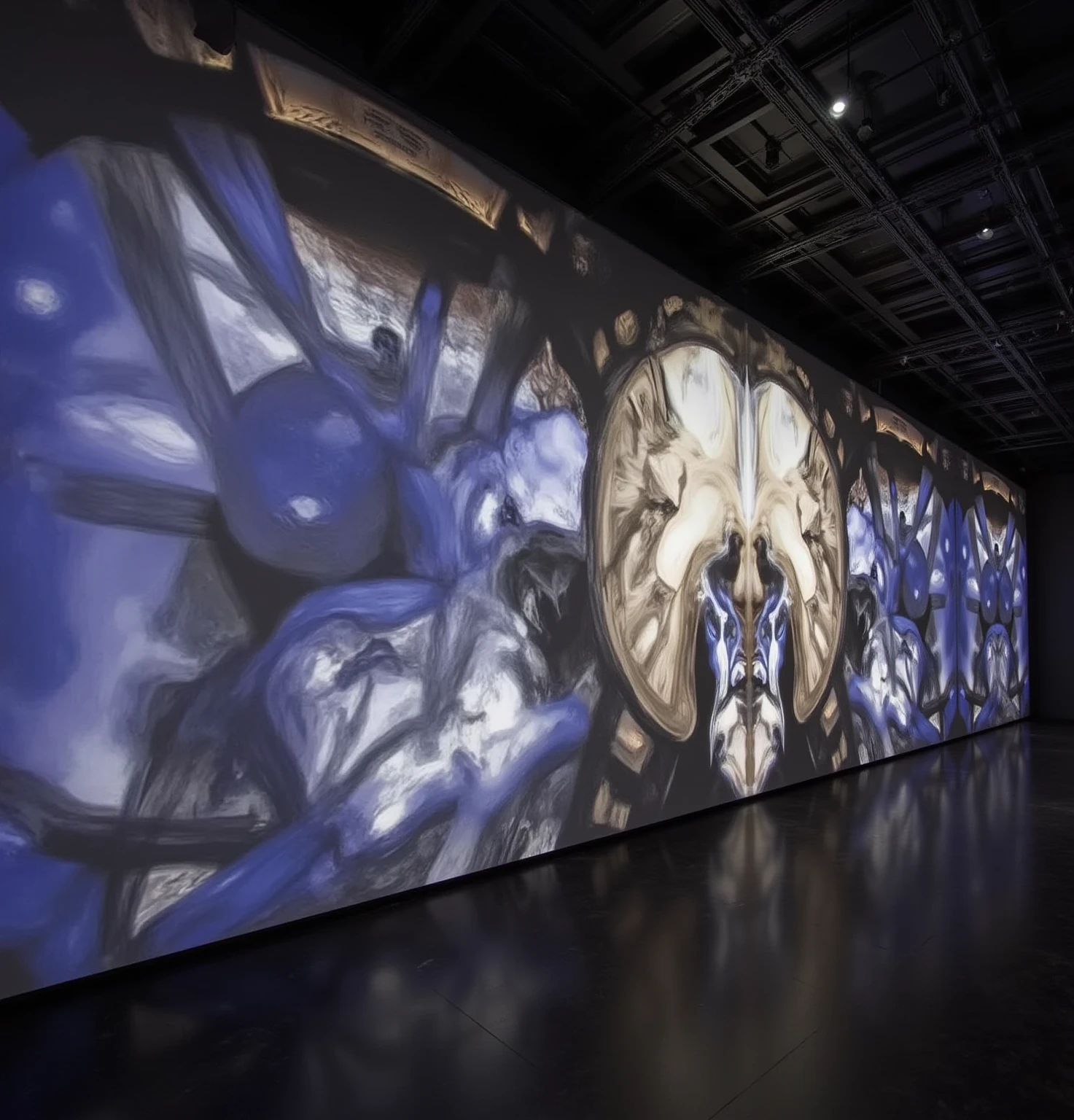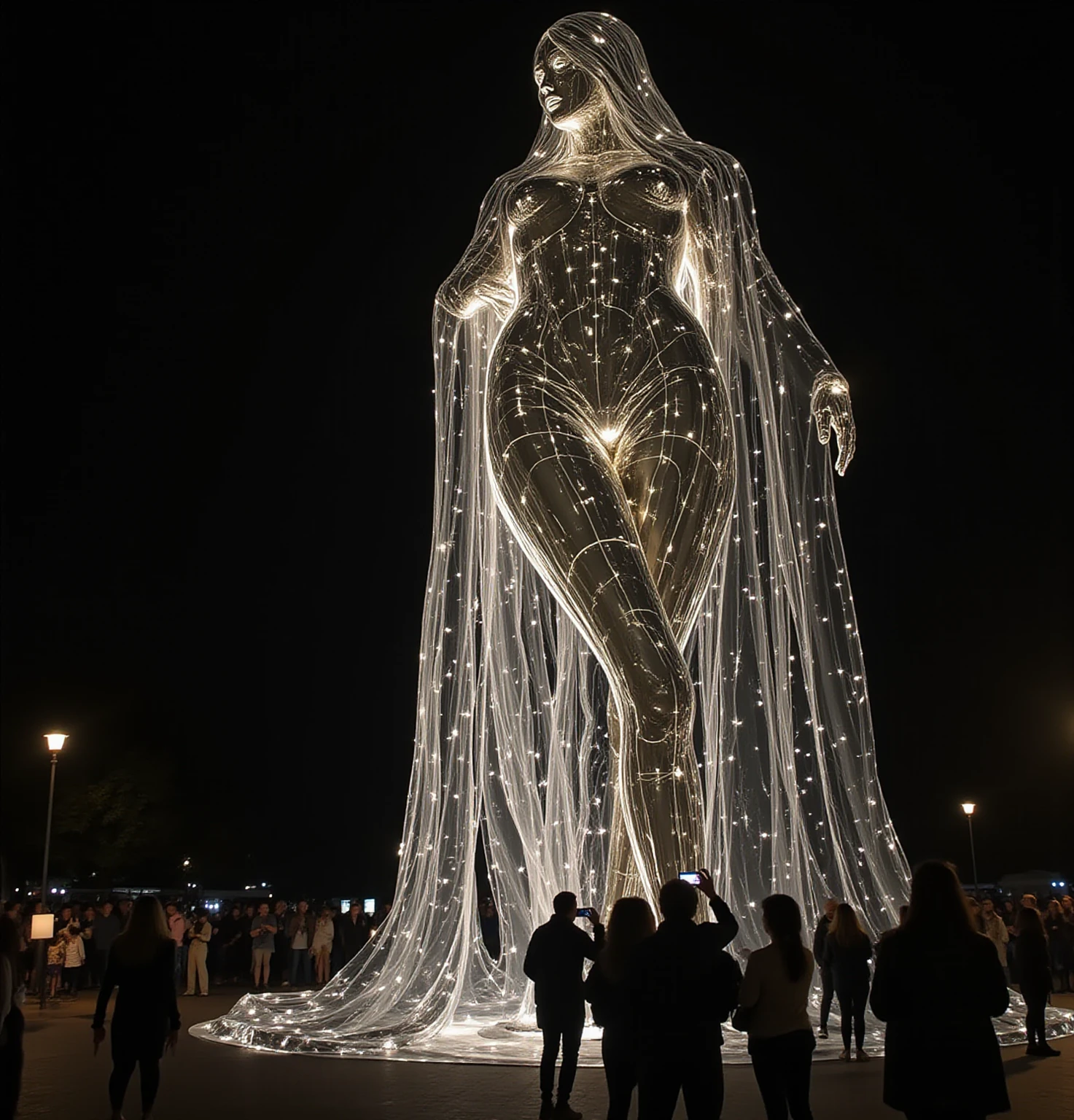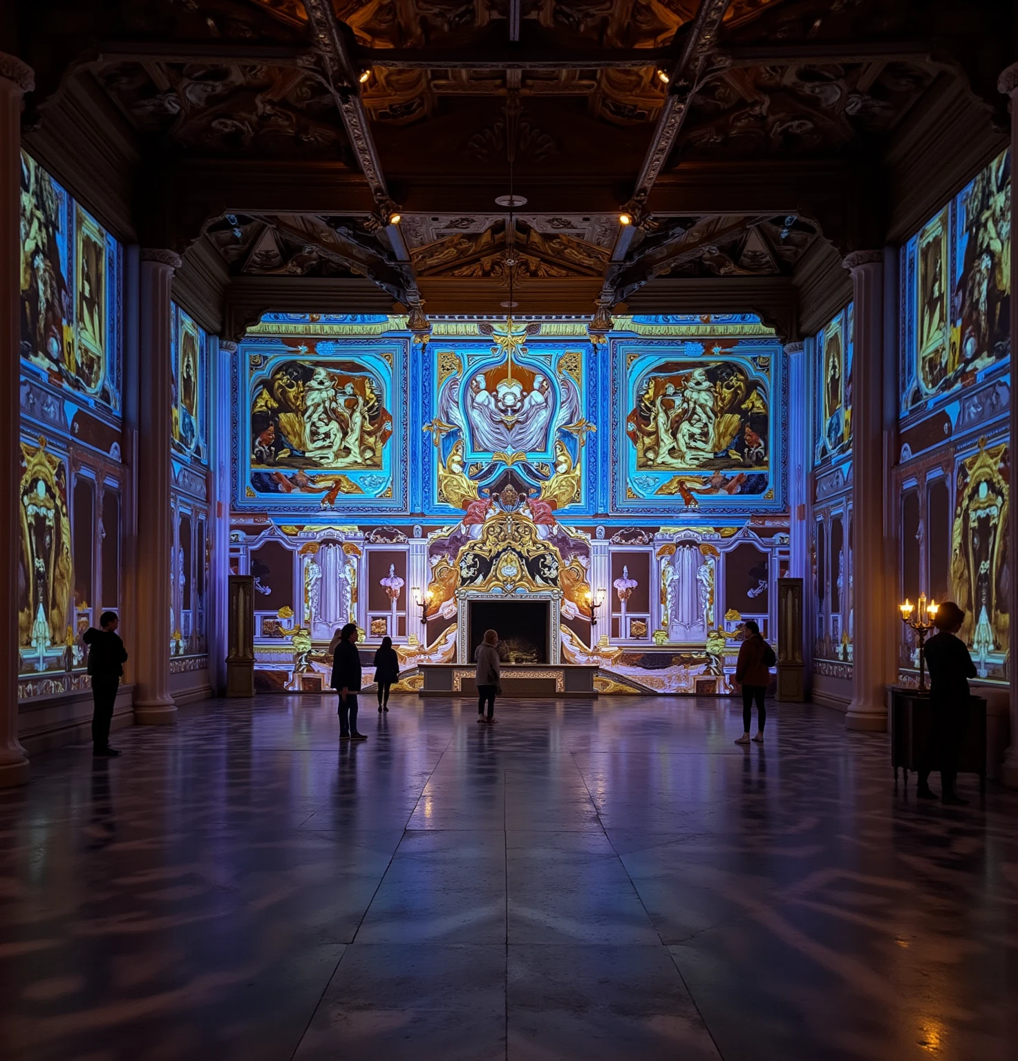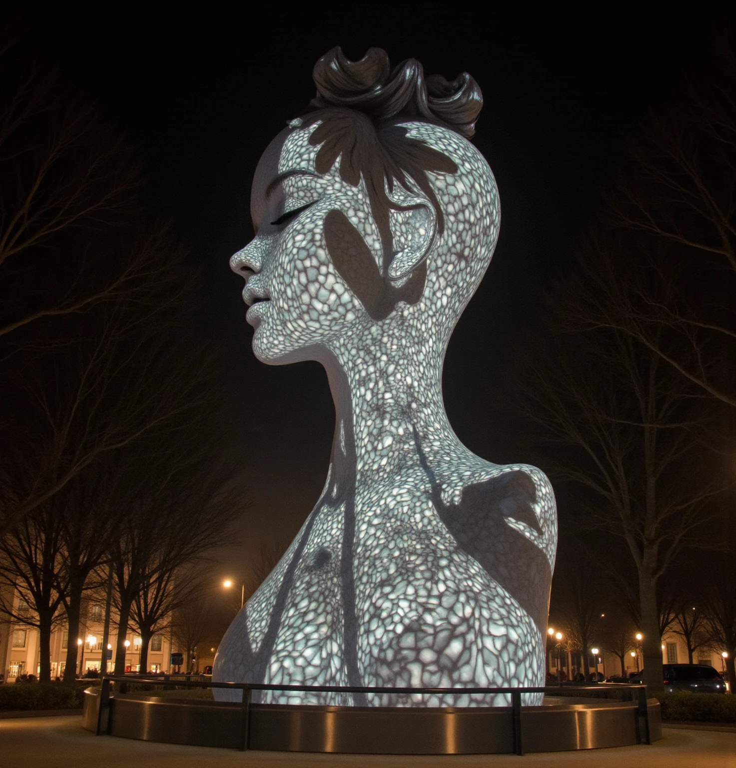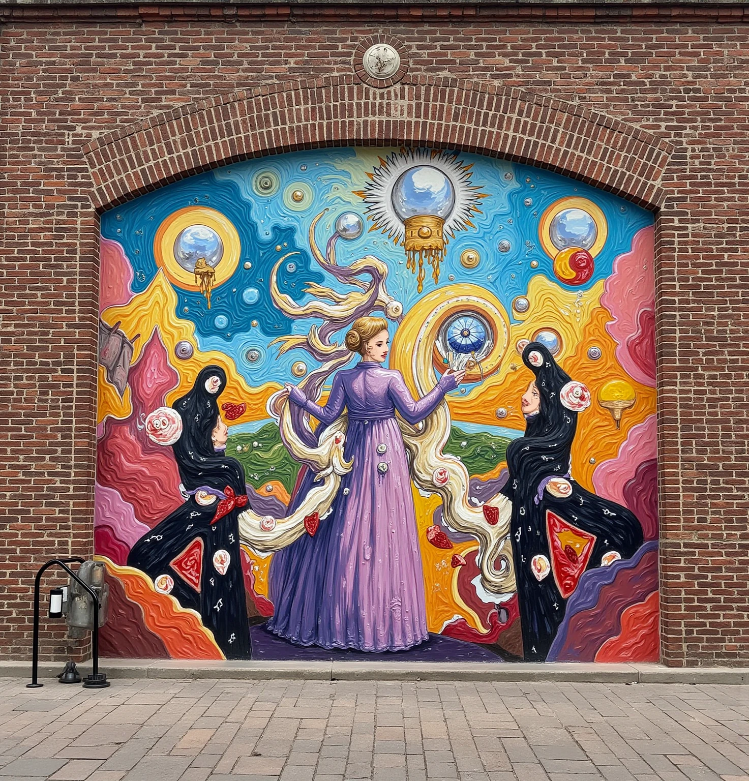彼女の最高のアート展を開催する、光と影のインタラクティブ、巨大な壁画です。