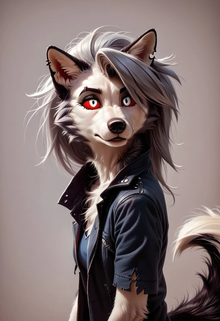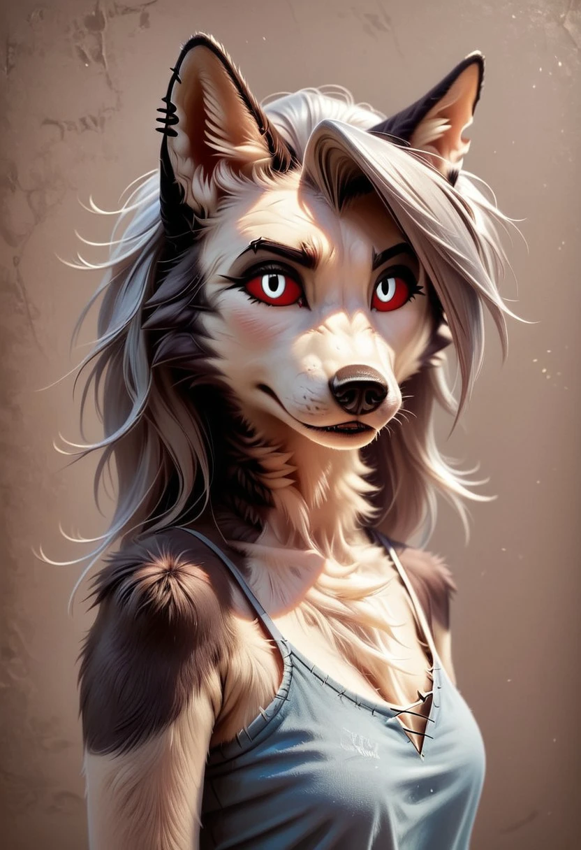 loona, helluva_boss, furry, anthro, tail, dog girl, wolf girl, animal nose, dog tail, furry female, wolf tail, furry, two-tone fur, gray fur, absurd res, sharp focus, <lora:more_details:1.0> detailed background, detailed skin, detailed hair, extremely detailed, ultra 8k quality, flat color, dark theme, Hyperrealistic, photorealistic, realistic, ultrarealistic, high definition, detailed fur, highres, super high resolution, 8k, White eyes, red sclera, high definition eyes, detailed eyes, high gradient eyes, eyesHD, canine teeth