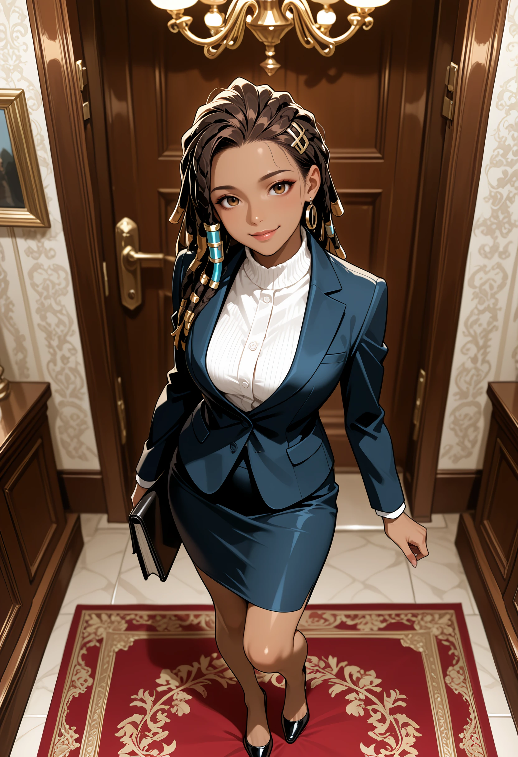 long hair, brown hair, , brown eyes, dark skin,