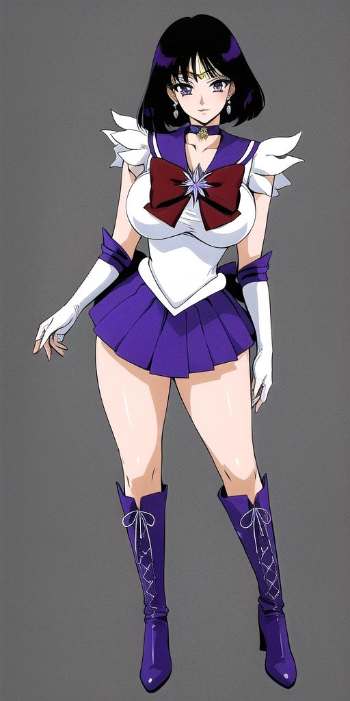 Sailor_saturn_Purple_sailor_collar_Purple_skirt_Maroon_bowtie_Maroon_back_bow_Purple_choker_Purple_boots_circlet: generic saturn outfit, might have elements from stars mixed in due to being made with fanart.