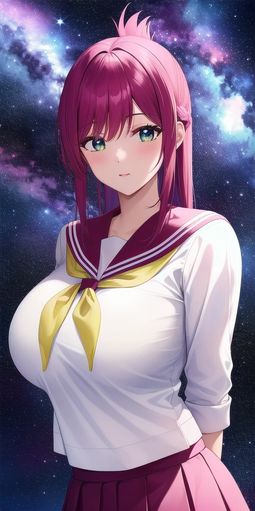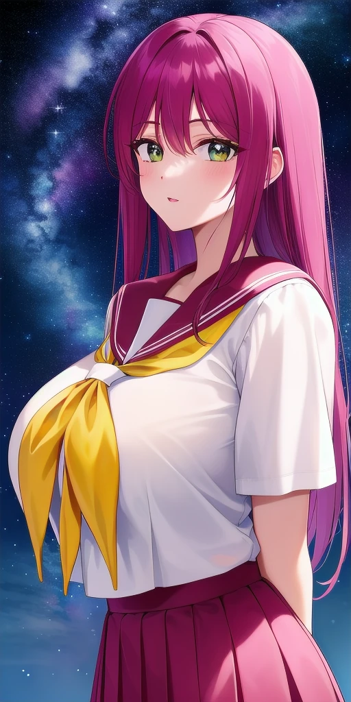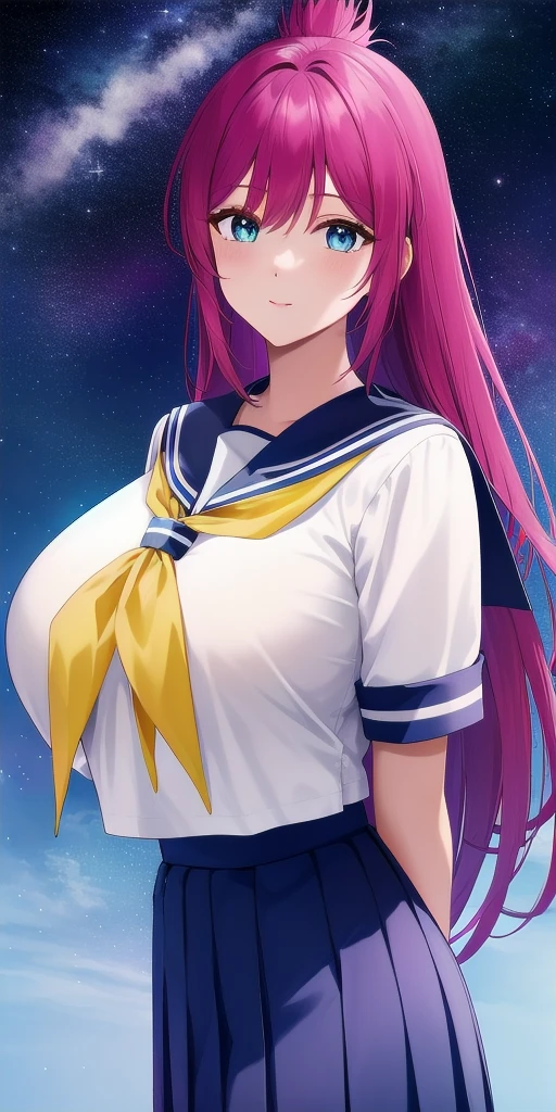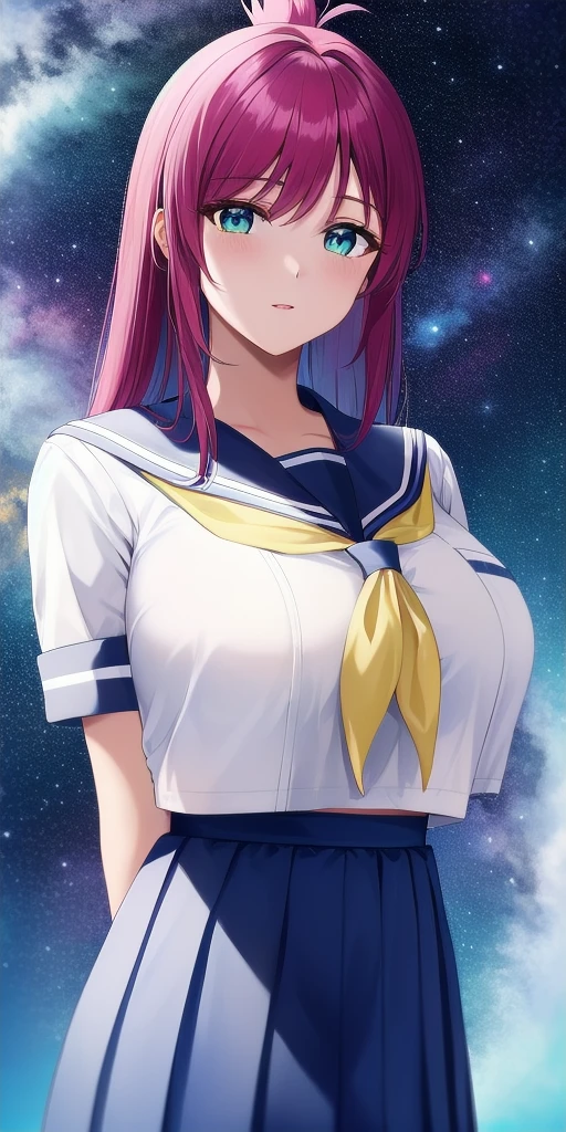 Uniform: school_uniform, serafuku, blue_sailor_collar, blue_skirt, pleated_skirt, yellow_neckerchief, white_shirt
