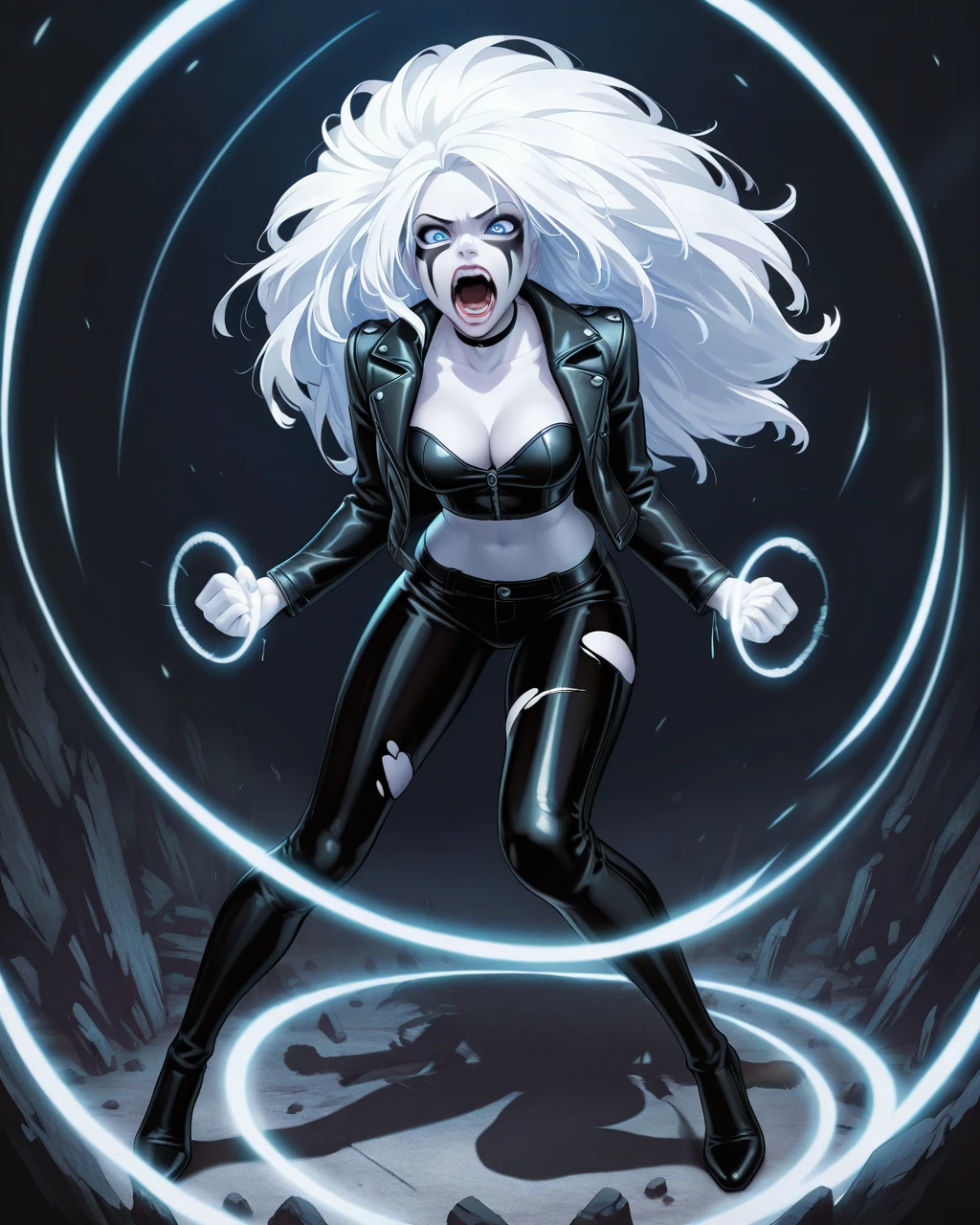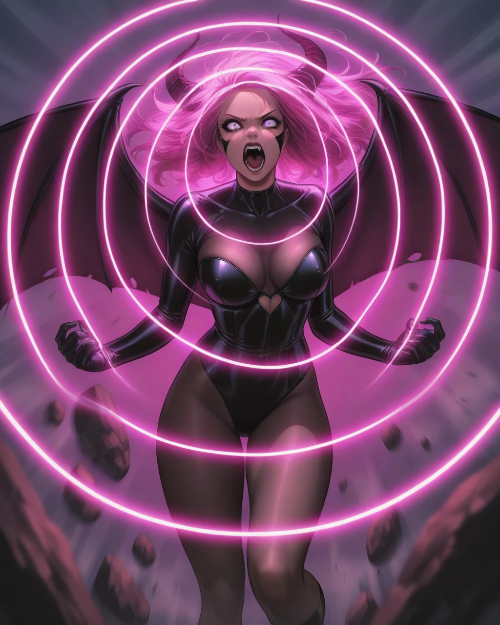 The main prompt super_scream will create a scream face and likely a superhero costume without additional prompts. The effects, shockwaves and concentric rings seems to be pretty much interchangeable.