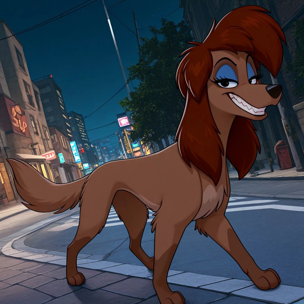 Rita, dog, canine, black eyes, brown hair, two tone fur, blue eyeshadow, eyelashes