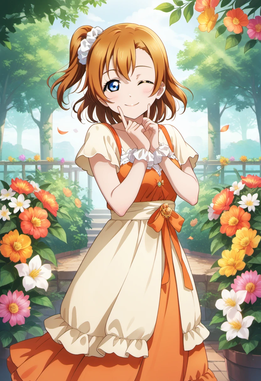 Trigger Words: kousaka honoka, brownish orange hair, blue eyes, short hair