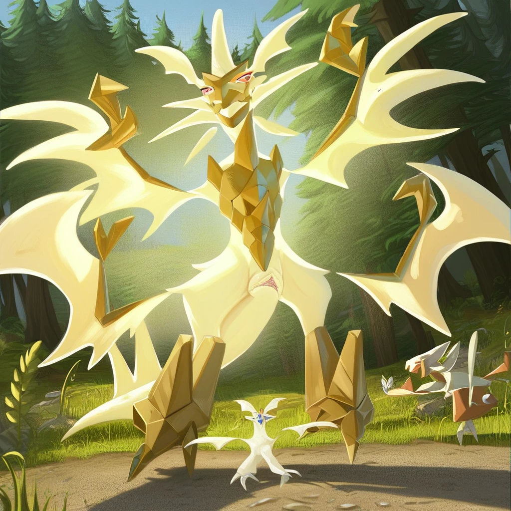 And now for the main event: The light that burns the Sky, Ultra Necrozma. Having by far the largest dataset, this one should be the most versatile. The AI does seem to have a hard time understanding what's going on with the wings, but nothing a little bit of prompting can't fix. It also does have a tendency to be VERY bright since most images of Ultra Necrozma have it with an absurd amount of light coming off it, again fixed with prompting. For anthros, I recommend setting the lora to 0.8-0.7. The activation tags are "NecroU" and "Ultra Necrozma," naturally.