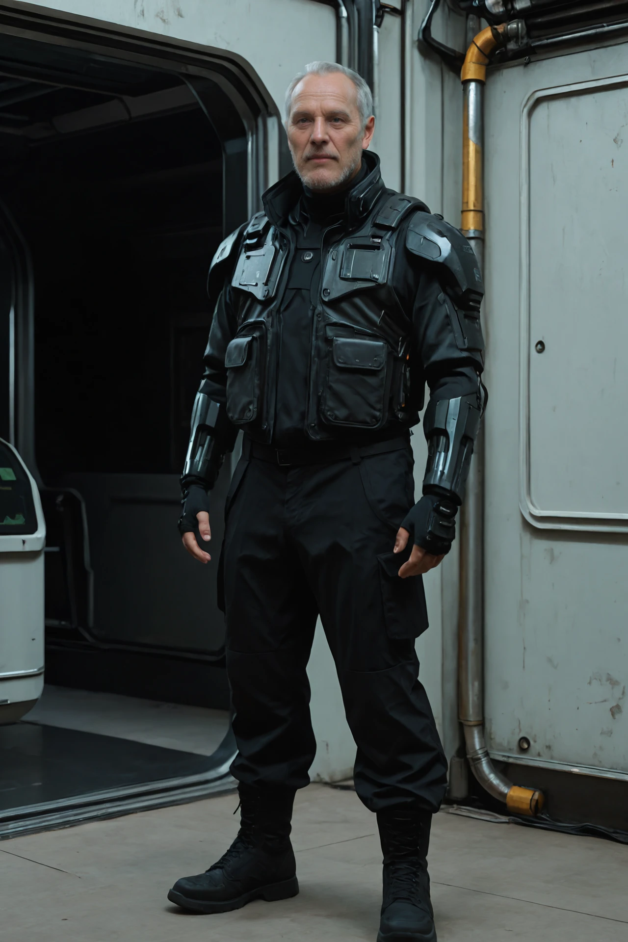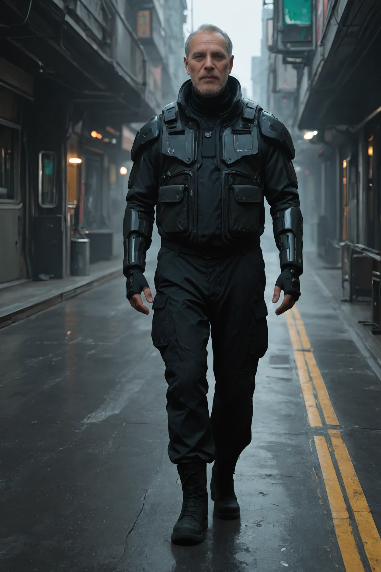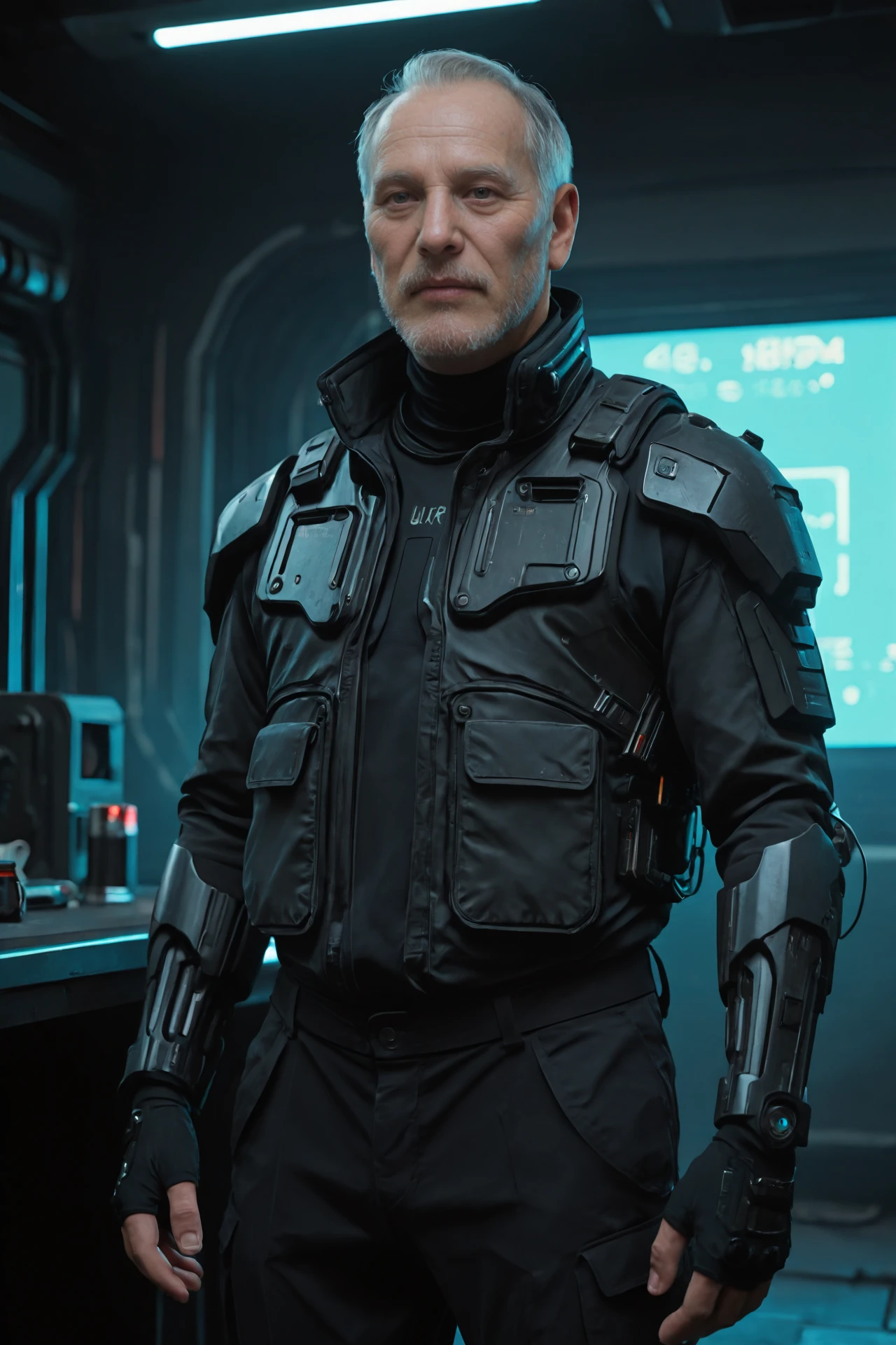 Black functional jacket, high-tech armor,black fingerless gloves,