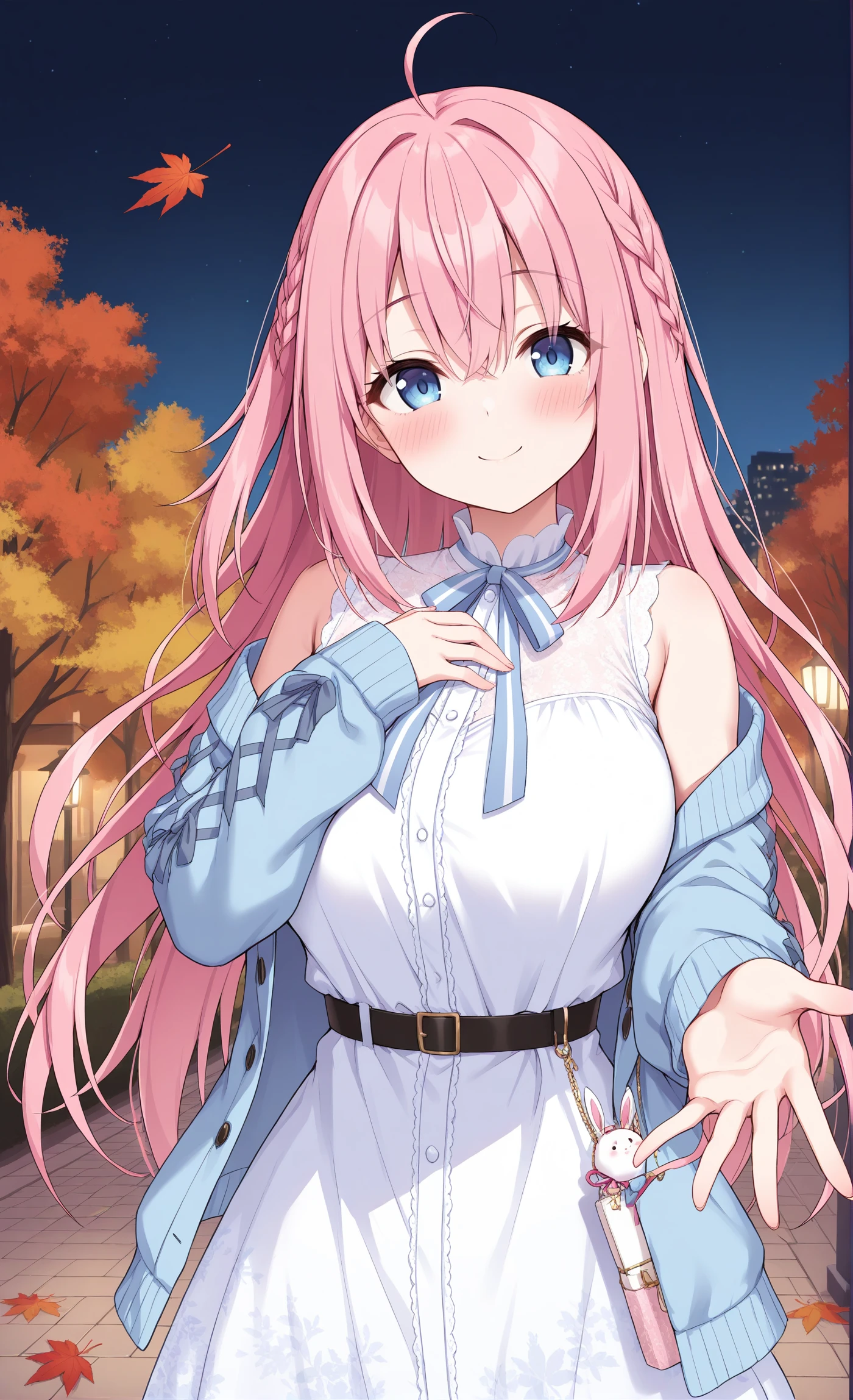 Base: Maaya,pink hair,blue eyes,long hair,ahoge,bangs,hair between eyes\