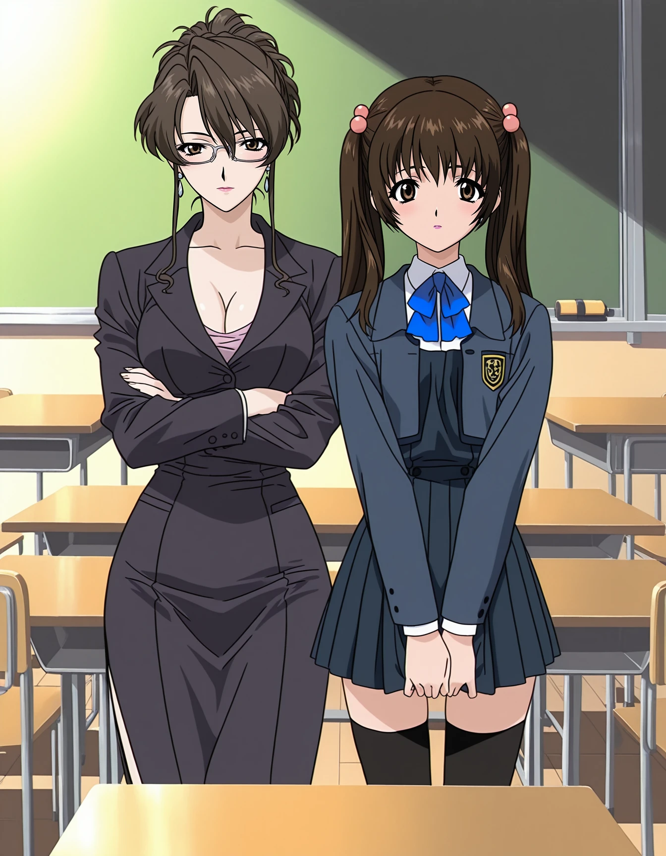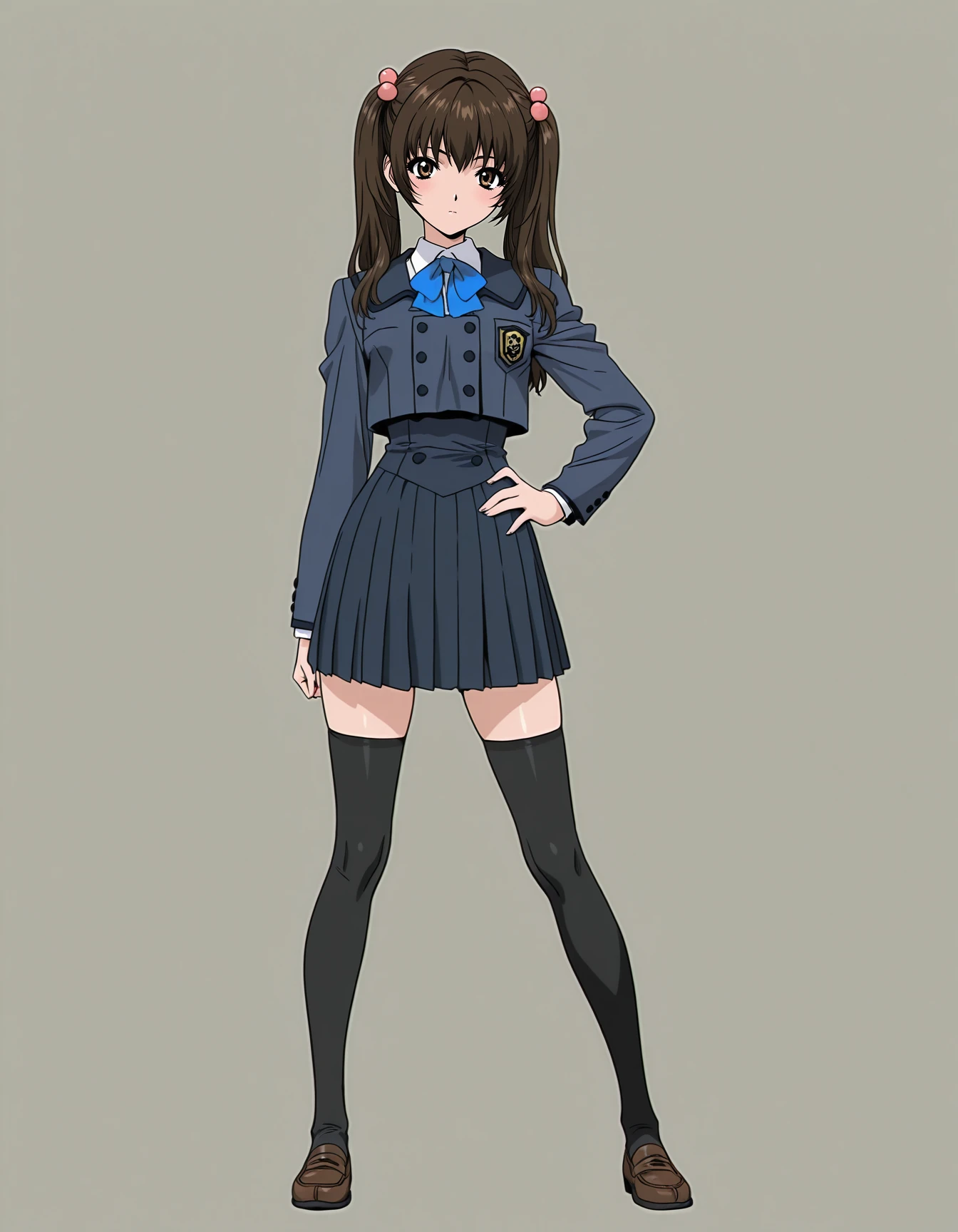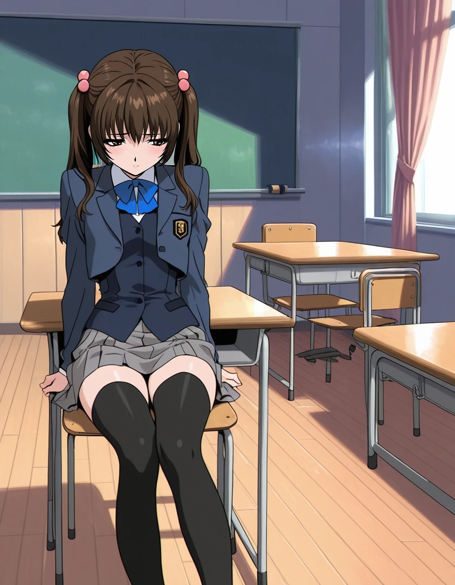 mai_himegoto,mai_hmgt_tomomi,long_hair,twintails,brown_hair,brown_eyes,hair_bobbles,school_uniform,zettai_ryouiki,black_thighhighs,pleated_skirt