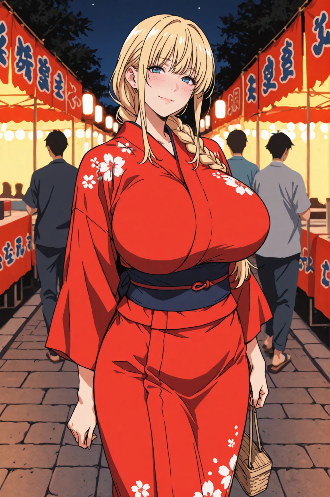 ,mira_3piece_thd,mature_female,huge breasts,blonde hair,long hair,braided ponytail,long sidelocks,bangs,blue eyes,mole,