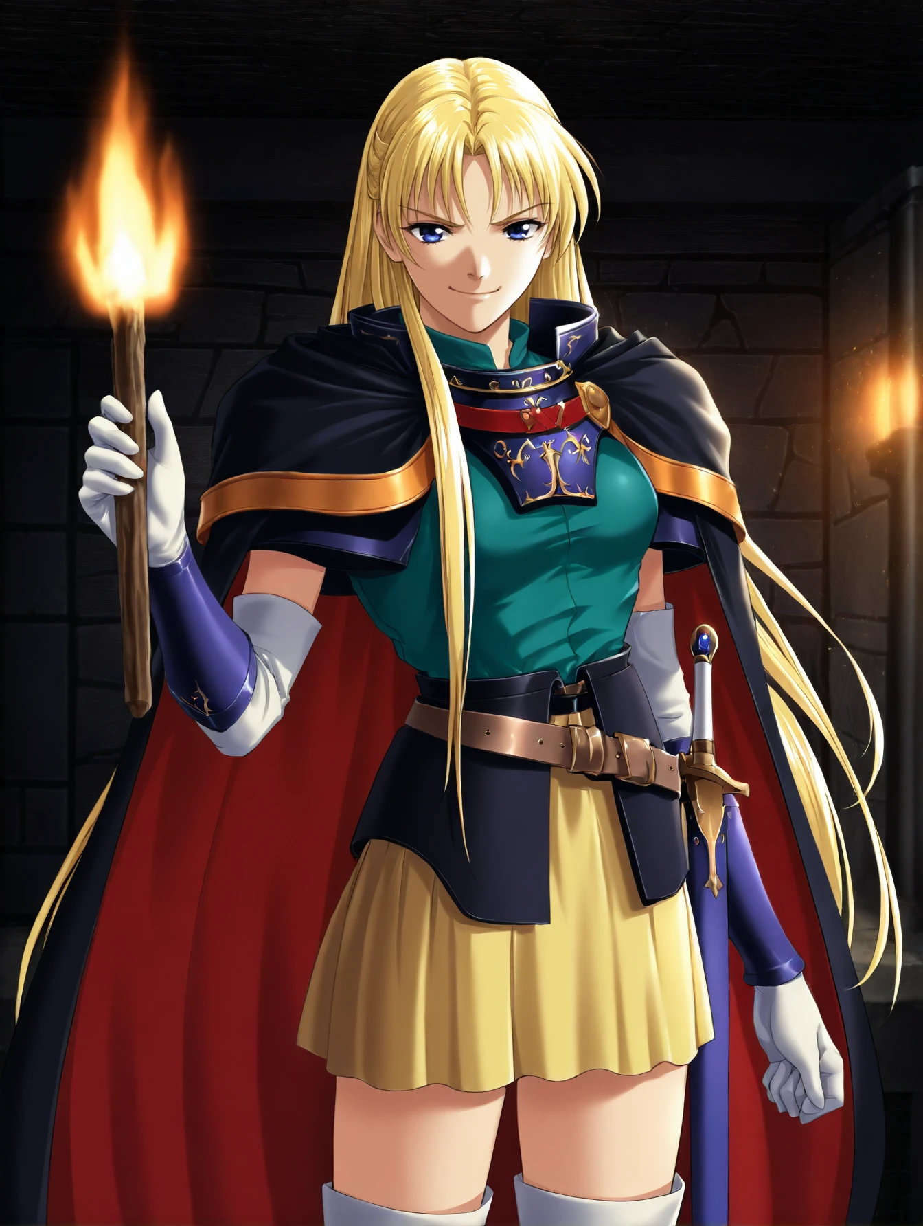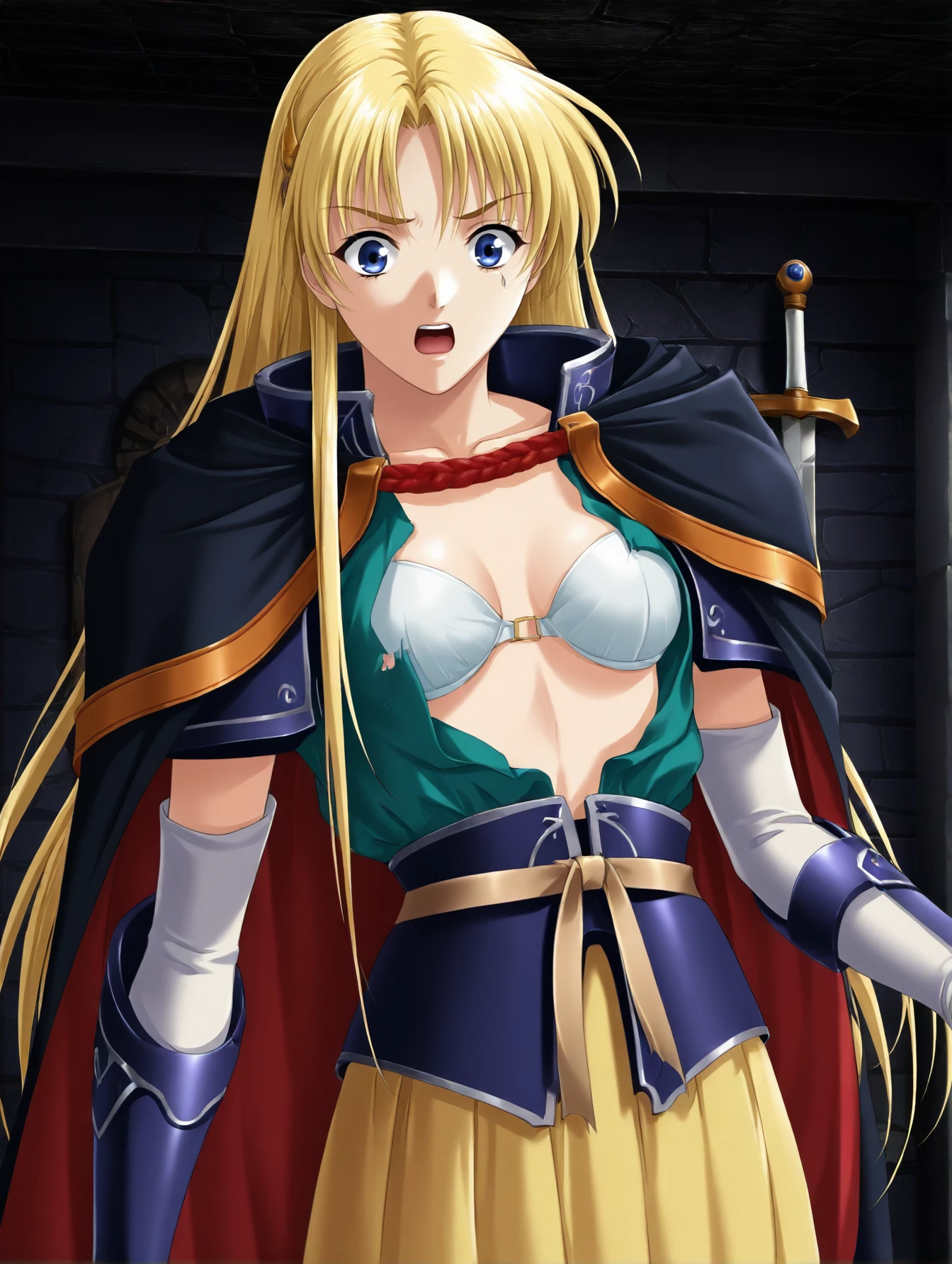 breastplate, blue cape, red cape, two-sided cape, green shirt, yellow sleeves, green skirtgreen skirt, yellow shirtblack cape, red cape, two-sided cape, green shirt, yellow skirt, elbow gloves, thighhighsgreen shirt, yellow skirt