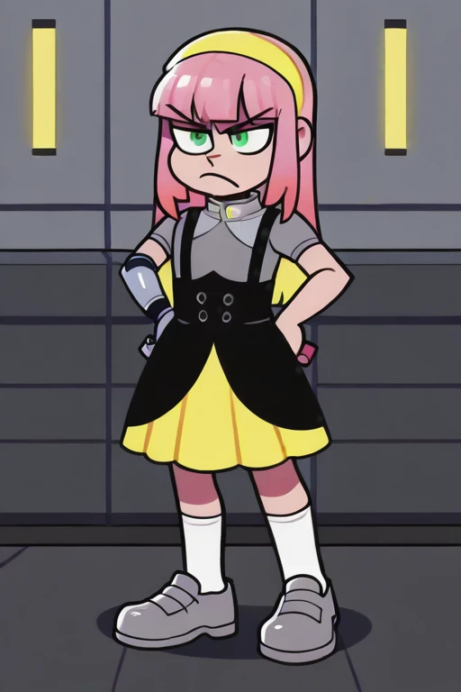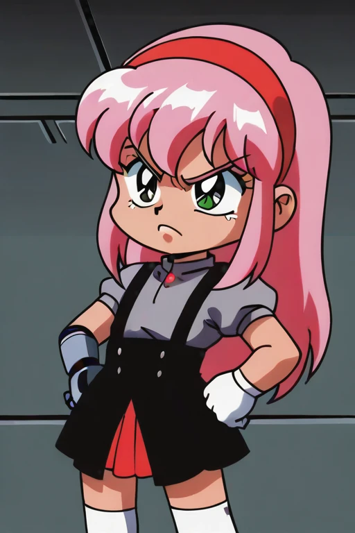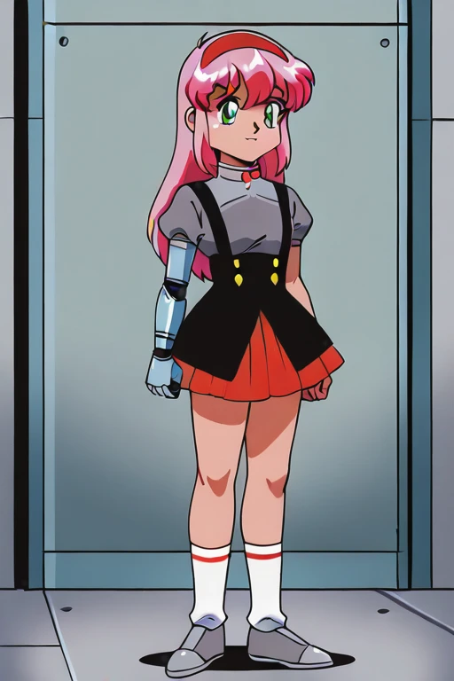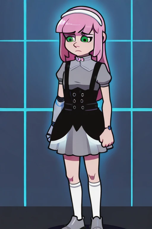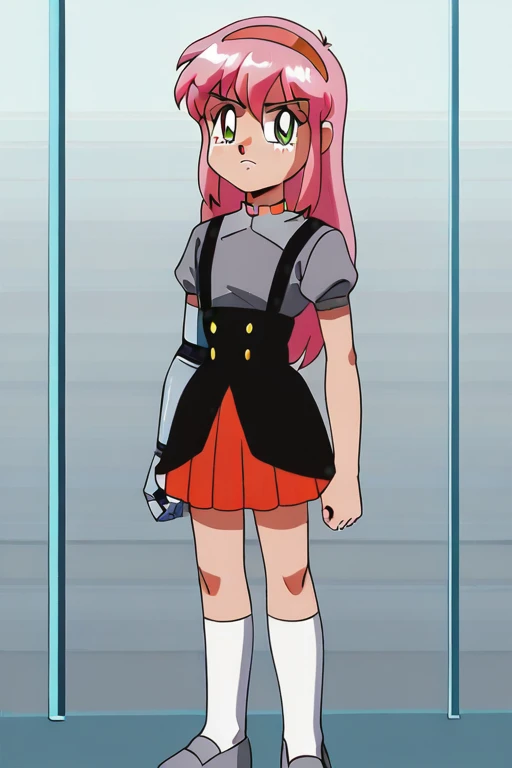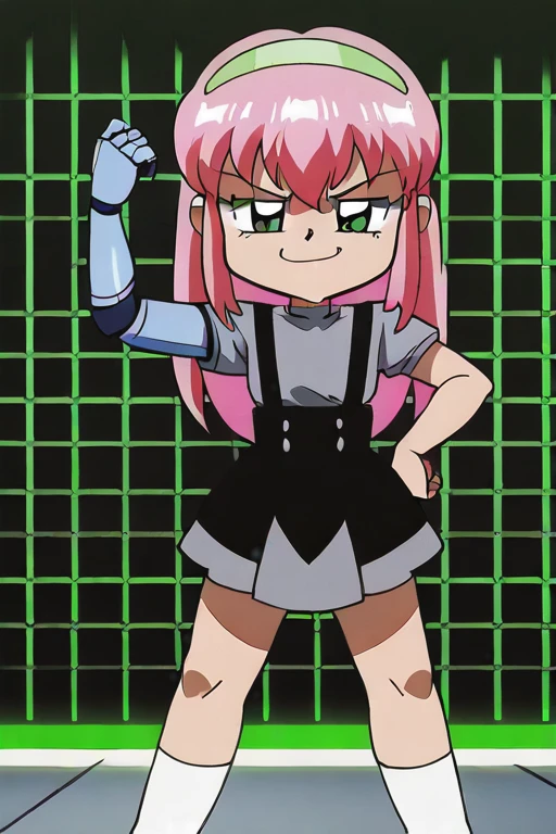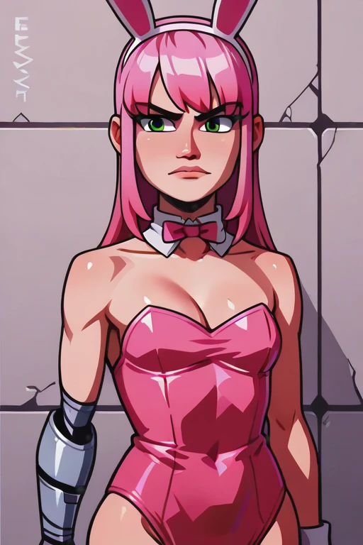 EvelynClaythorne, Pink Hair, Green Eyes, mechanical arm