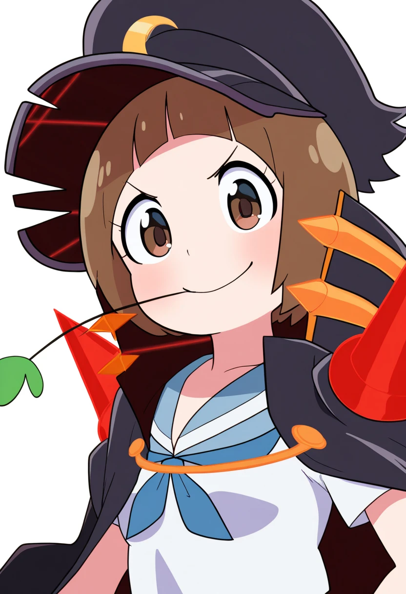 1girl, mankanshokumako, brown eyes, brown hair, short hair, bob cut