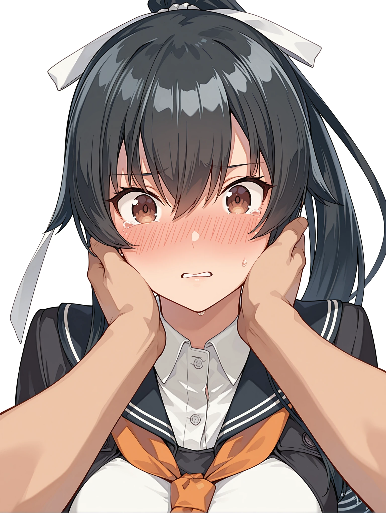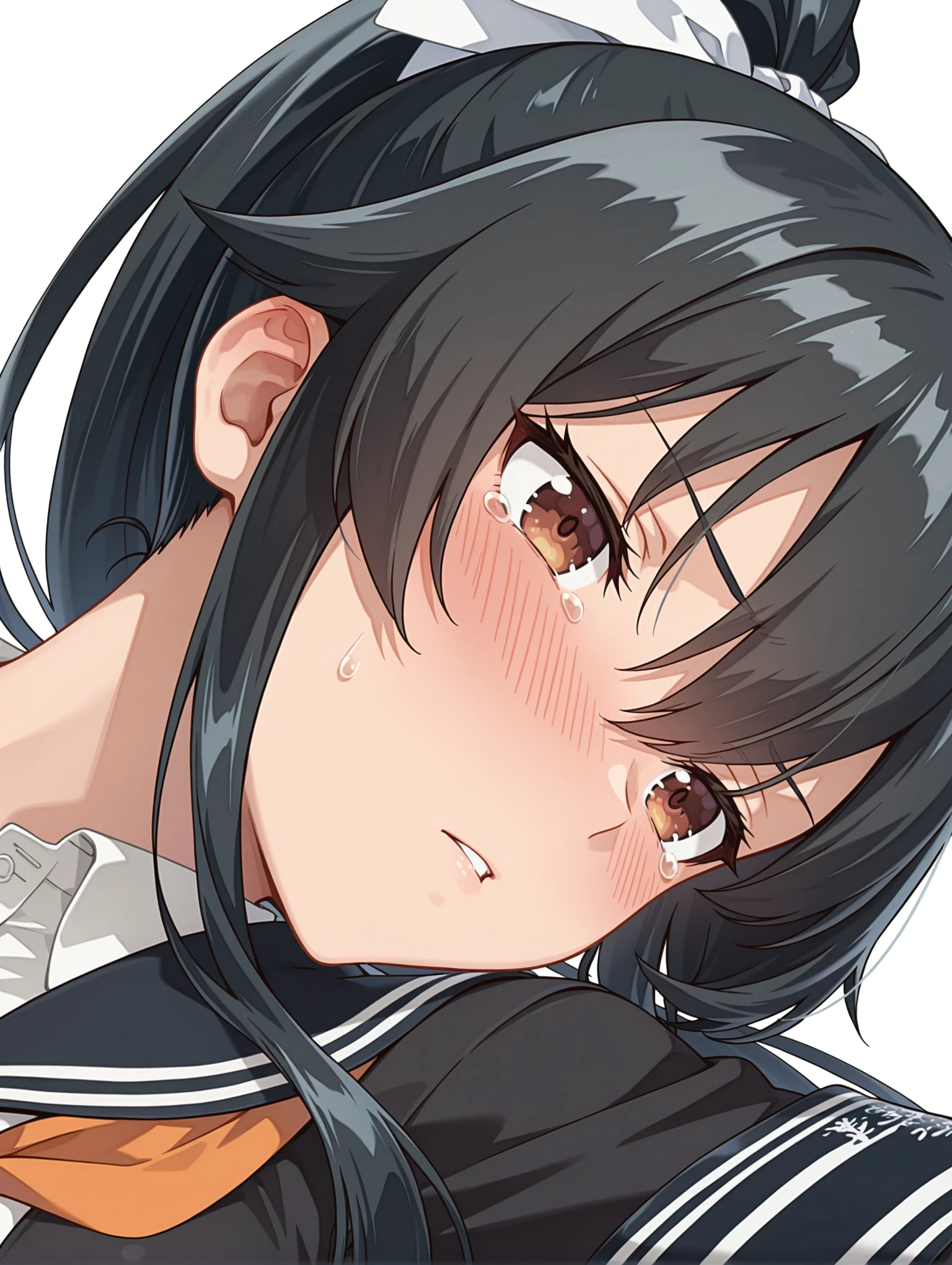 l_c_yahagi_kai2_otsu,black hair,ponytail,very long hair,brown eyes,white bow,