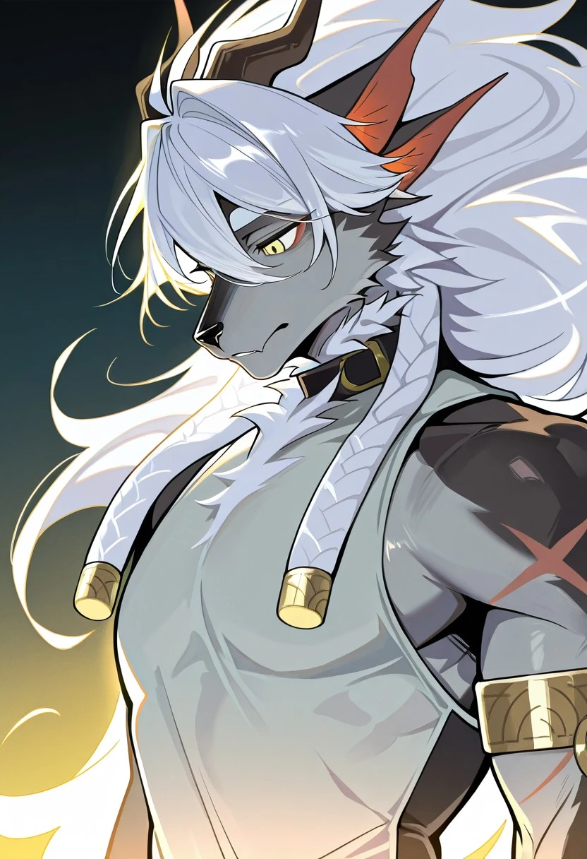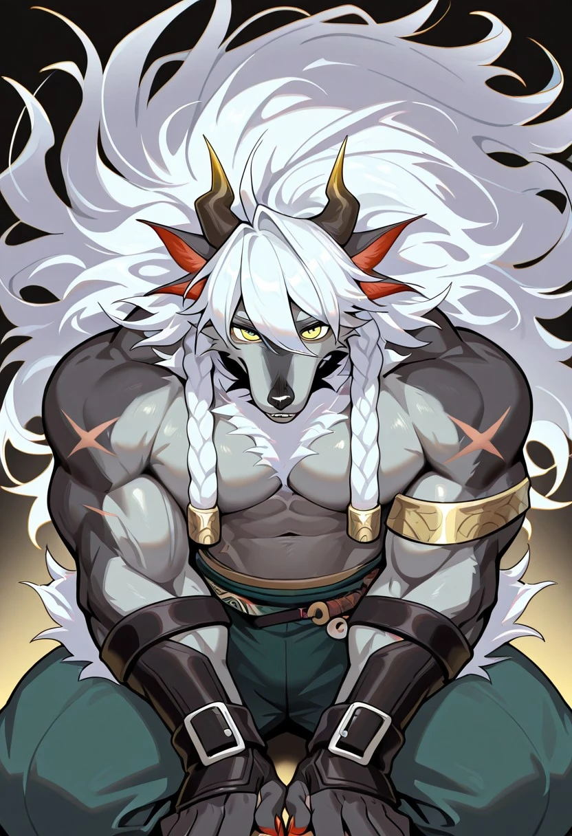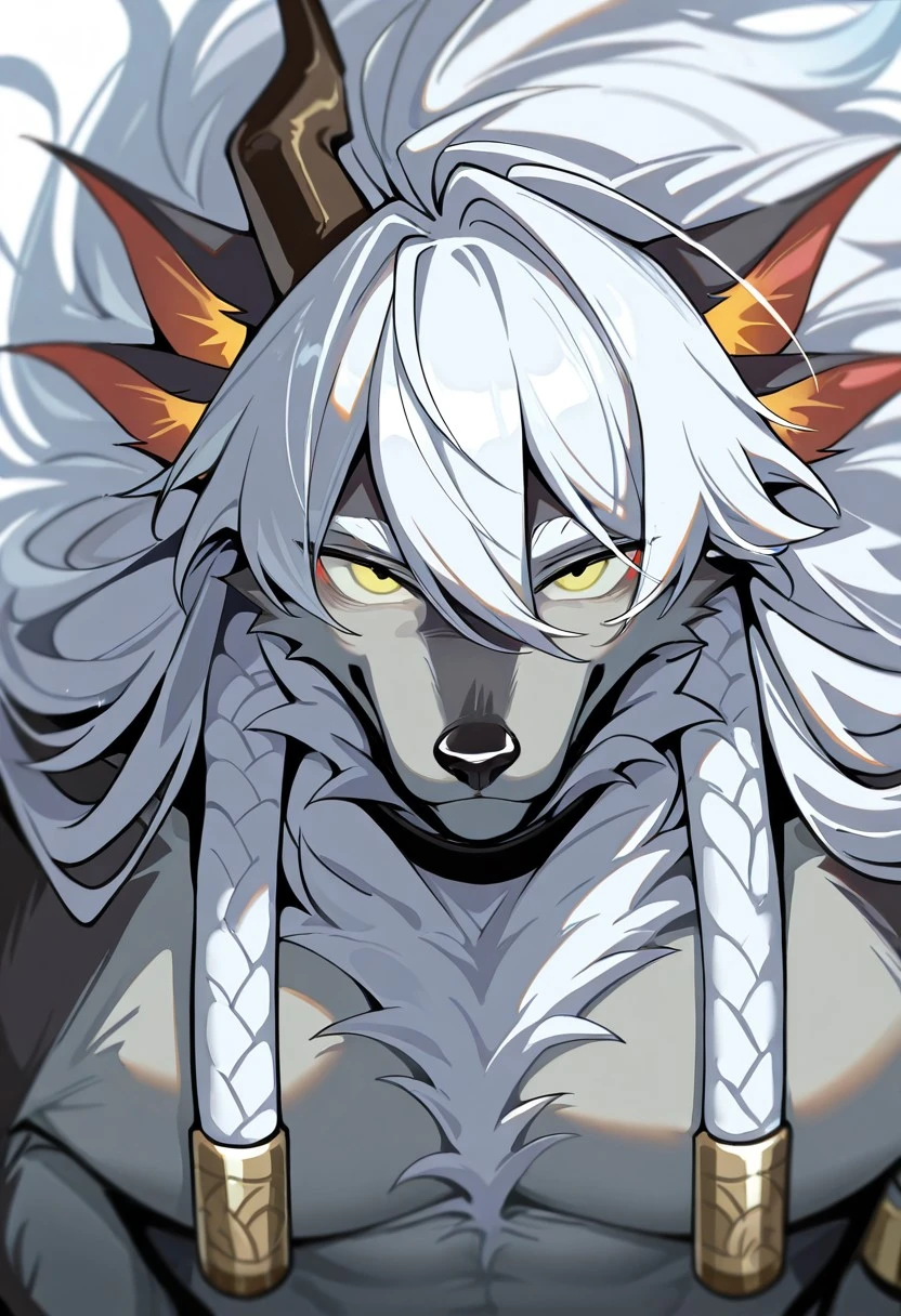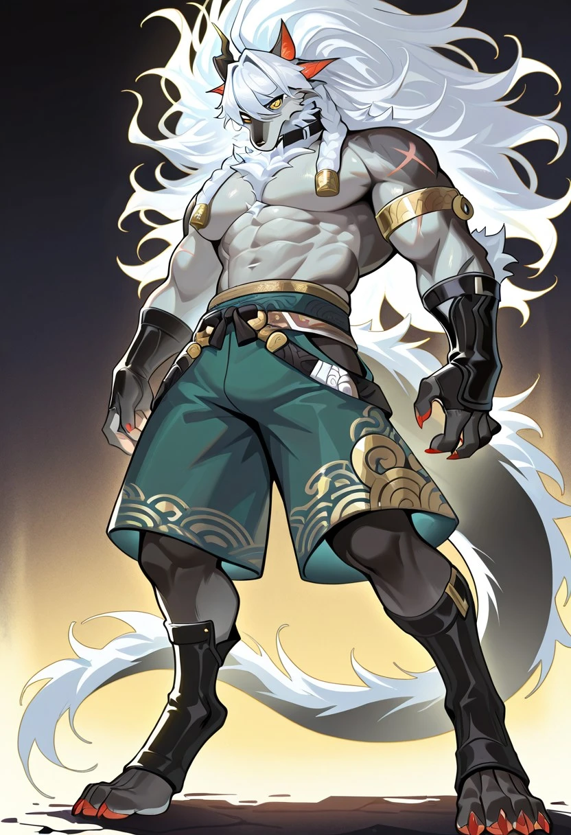 wolf boy, sui zai, black fur, yellow eyes,