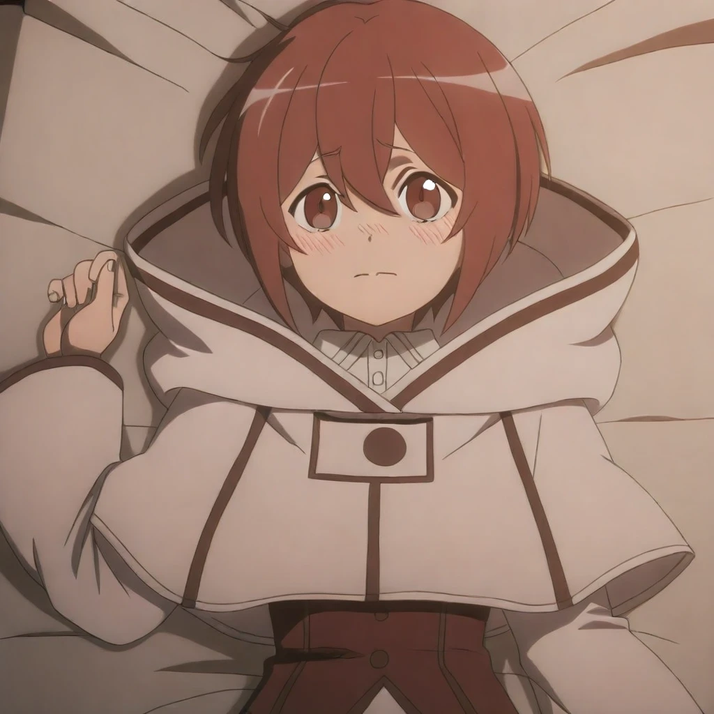 hood, hood down, white shirt, capelet,, Casual Attire: