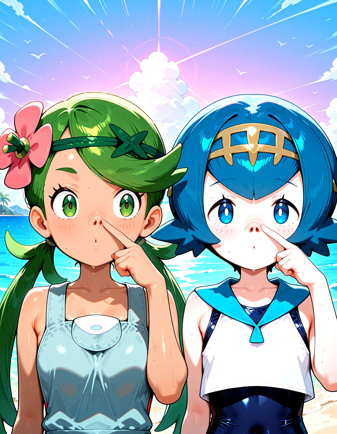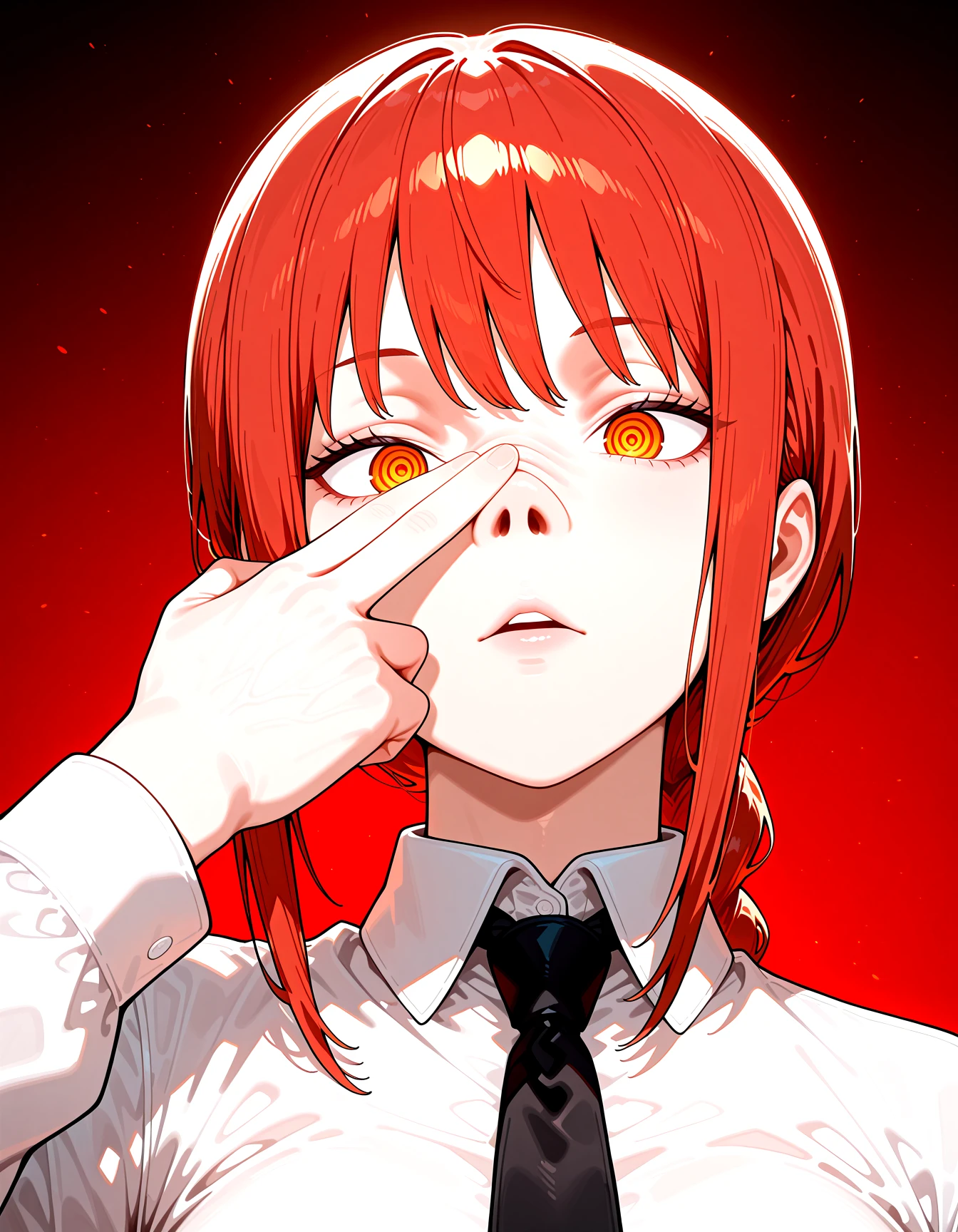 self p1g nose, pushing nose up, finger on own nose, hand up, nostrils,