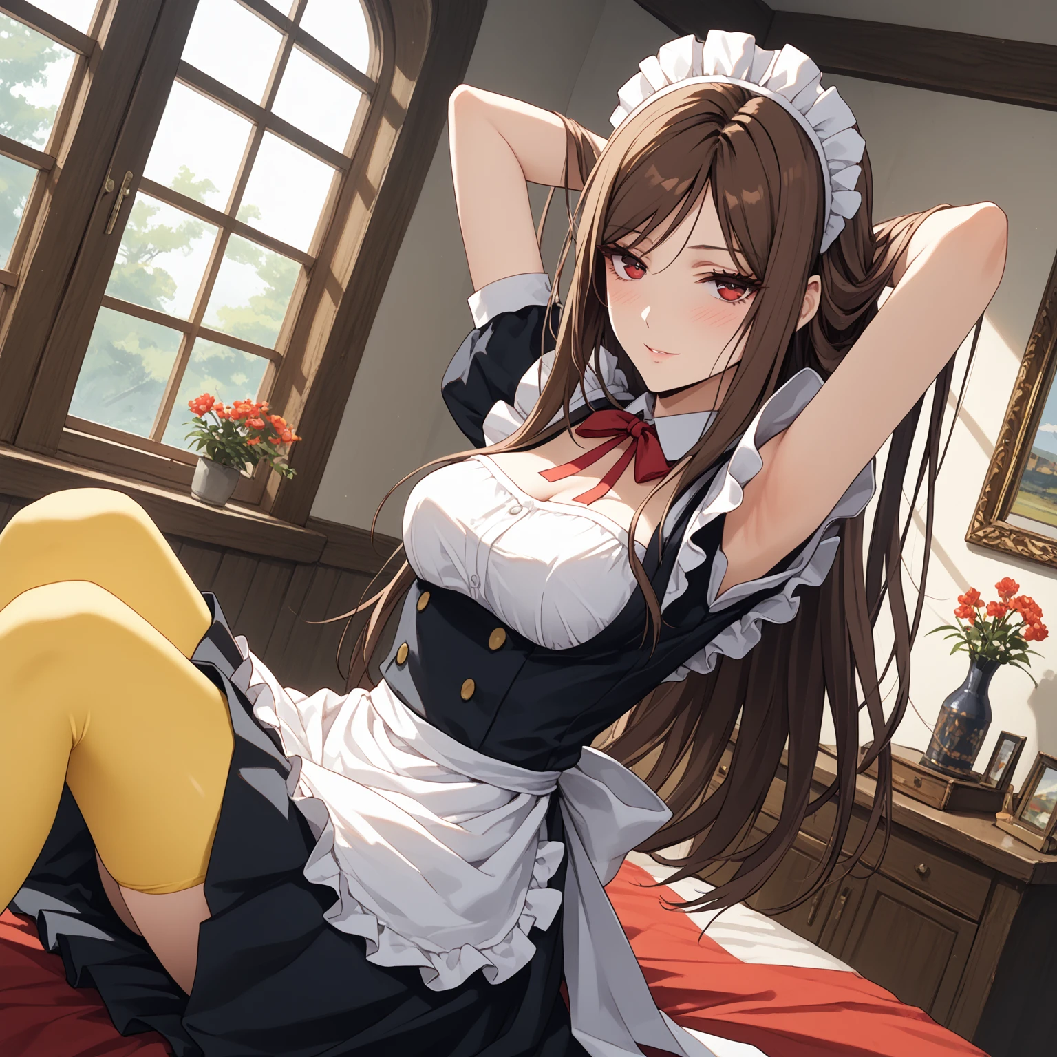 Trigger words: re1kam1shima, 1girl, brown hair, long hair, red eyes, long sidelocks, parted hair.