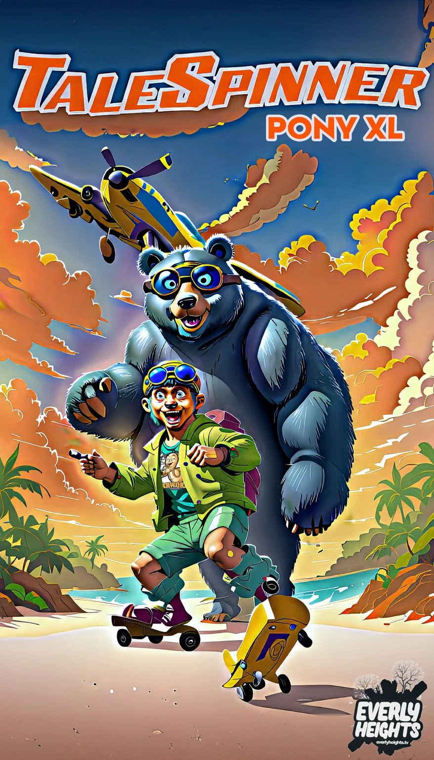Embark on your own flight of fancy with Everly Heights TaleSpinner. Generate character sheets, prop turnarounds, backgrounds, and full scenes in the signature Everly Heights Story Studio style with any SDXL checkpoint.