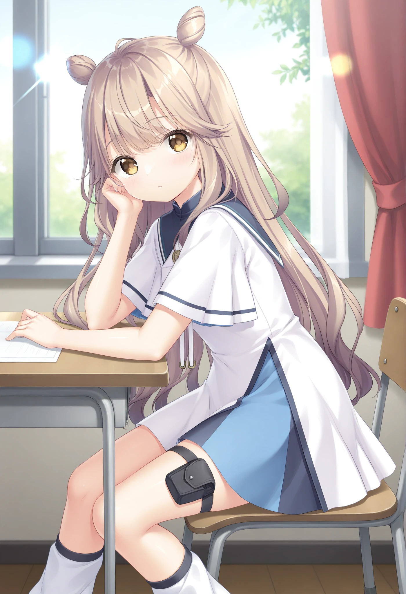 short sleeves,white dress,short dress,black sailor collar,collared dress,layered dress,blue dress,two-tone dress,thigh pouch,loose socks,裙子加夹克 (dress with jacket)