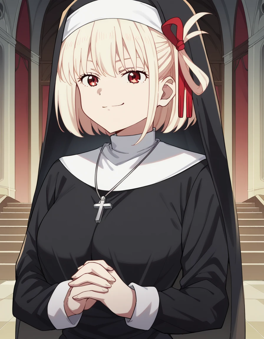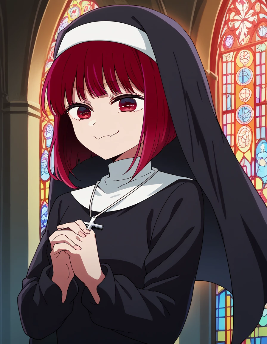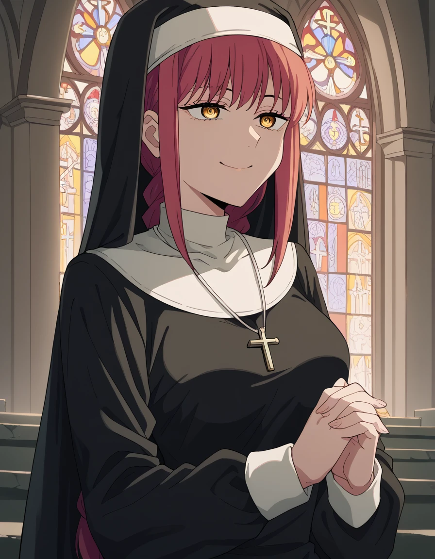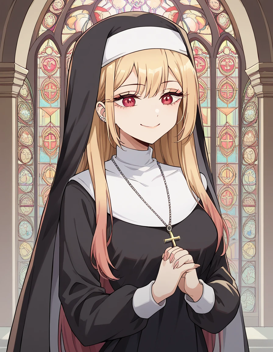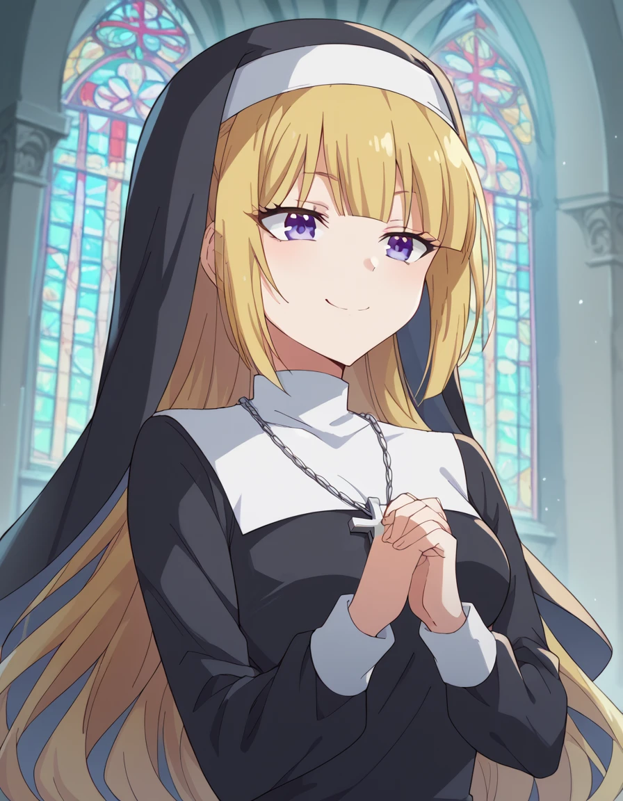 <lora:traditional-nun-ponyxl-lora-nochekaiser:1>, traditional nun, nun, habit, long sleeves, dress, black dress, jewelry, black veil, cross, cross necklace,