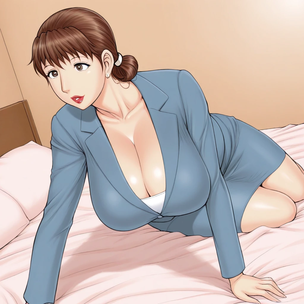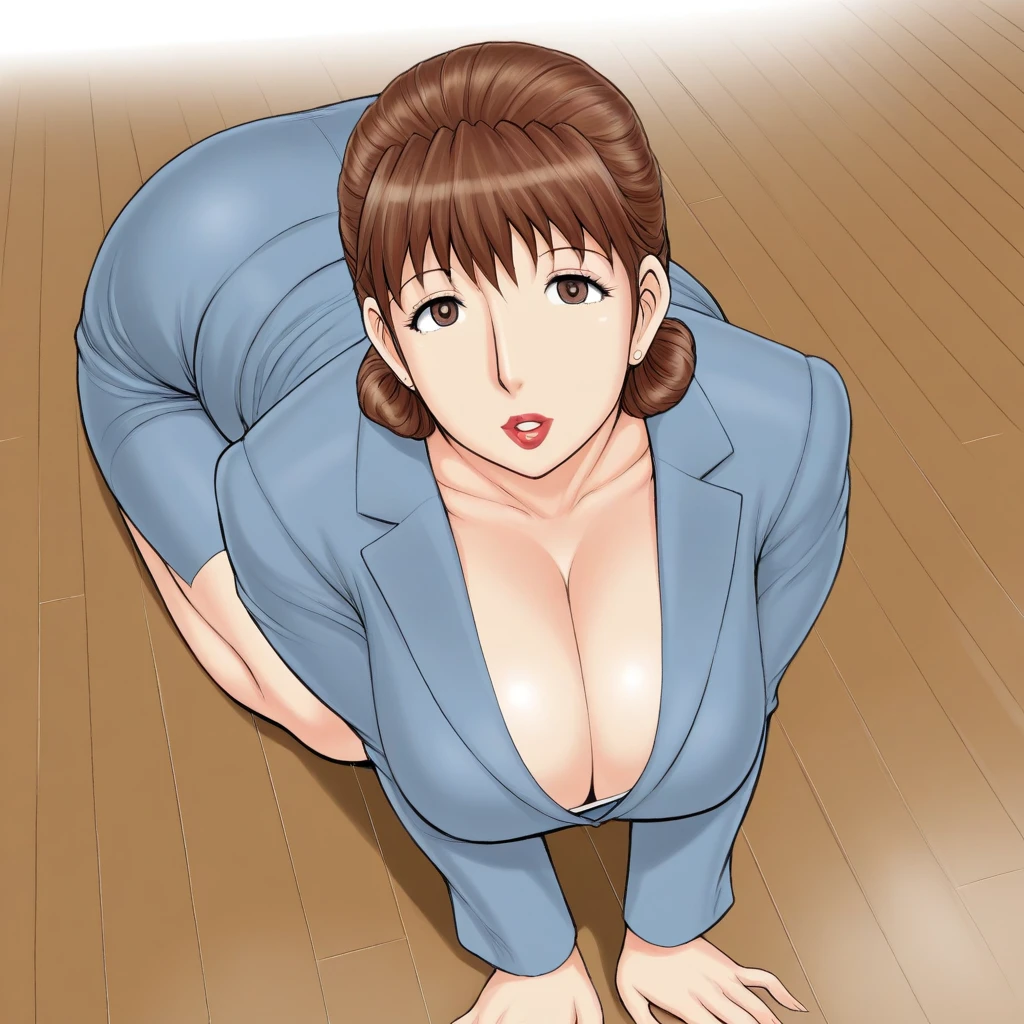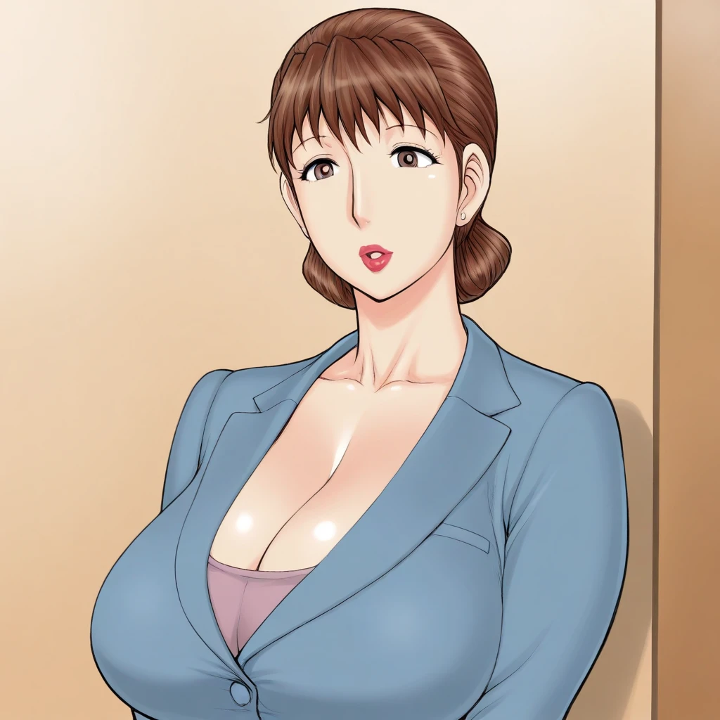 Mom, 1girl, solo, brown hair, brown eyes, mature female, lipstick,