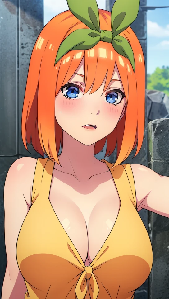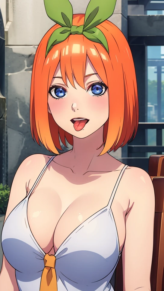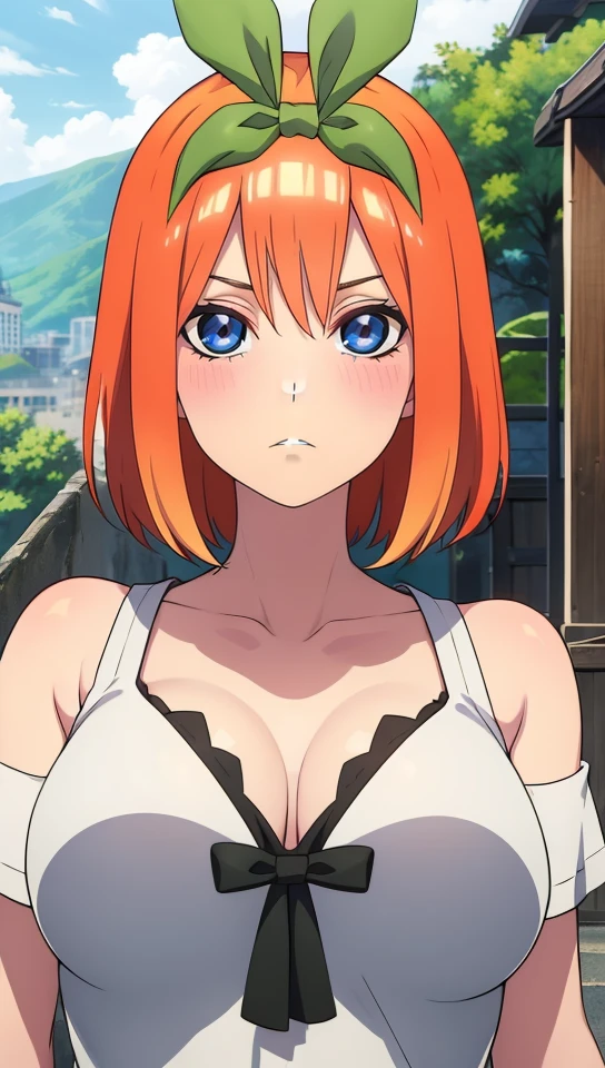blue eyes_orange hair_shoulder-length hair_fair skin_hair ribbon_ hairband_ ribbon tie