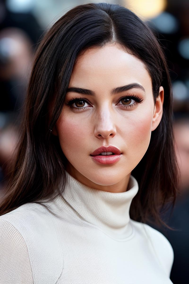 So I recommend always starting your prompt like that and then building the rest of the prompt from there. For instance, "photo of (mbe11ucci:0.99), a woman as a movie star, modelshoot style, (extremely detailed CG unity 8k wallpaper), photo of the most beautiful artwork in the world, professional majestic oil painting by Ed Blinkey, Atey Ghailan, Studio Ghibli, by Jeremy Mann, Greg Manchess, Antonio Moro, trending on ArtStation, trending on CGSociety, Intricate, High Detail, Sharp focus, dramatic, photorealistic painting art by midjourney and greg rutkowski, (white turtleneck top:1.2), ((movie premiere)), (long skirt), ((standing near a movie theater)), ((paparazzi in the background)), (looking at viewer:1.2), (detailed pupils:1.3), ((closeup portrait:1.1))"
