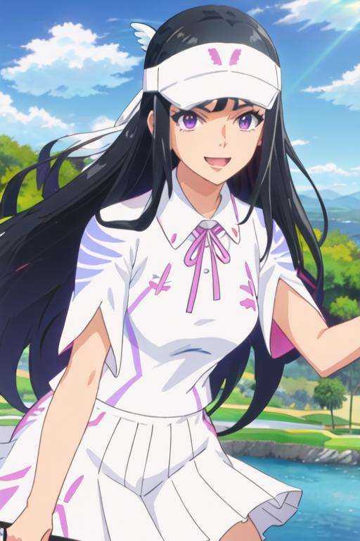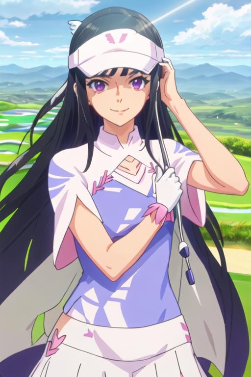The trigger word is amawashi_aoi_birdiewinggolfgirlsstory, and the recommended tags are best quality, masterpiece, highres, solo, {amawashi_aoi_birdiewinggolfgirlsstory:1.15}, long_hair, black_hair, purple_eyes, smile, visor_cap, day, blue_hair.