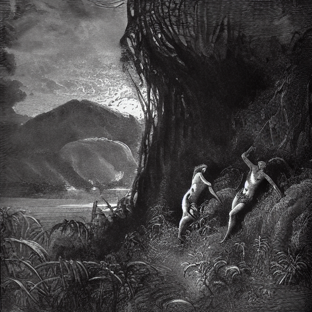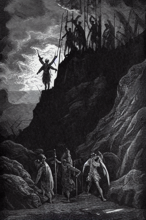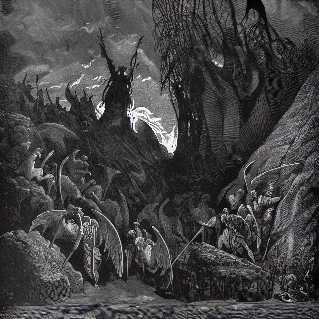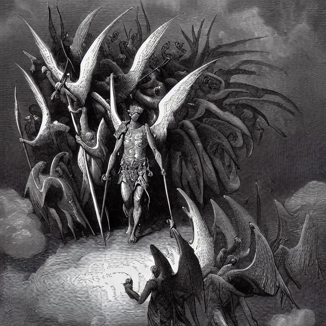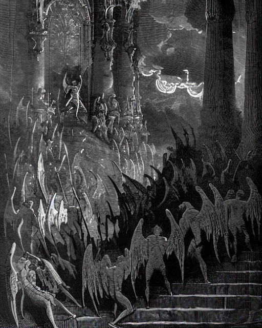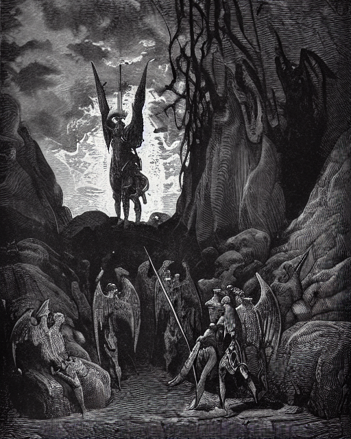 Paradise Lost illustrated by Gustave Dore was published in 1866 AD. Used as training data
