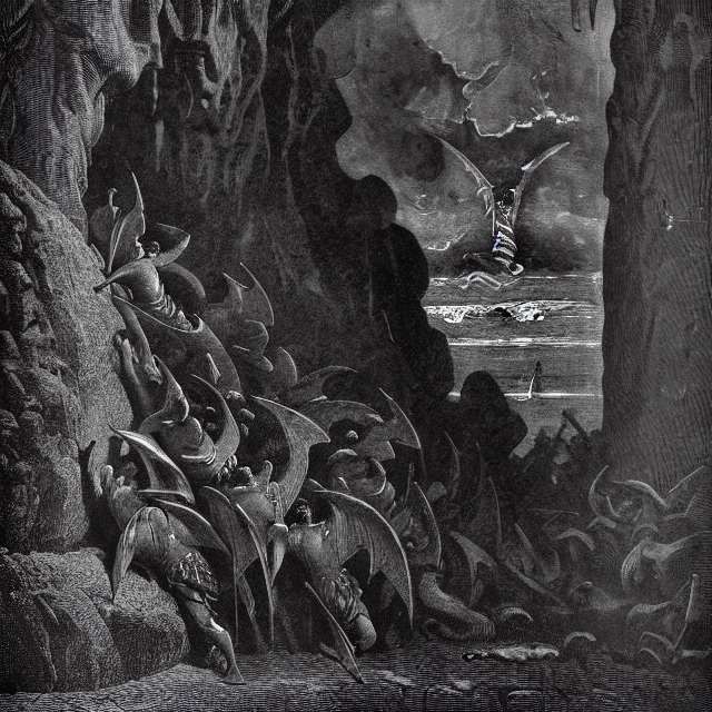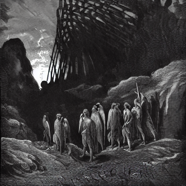 Paradise Lost illustrated by Gustave Dore was published in 1866 AD. Used as training data (use low blend values like :0.1 for main tag)