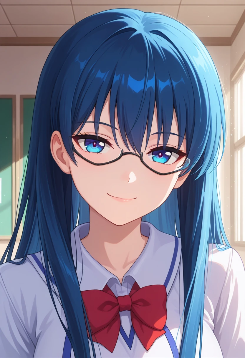 arnoulww, blue eyes, blue hair, long hair, very long hair, glasses, semi-rimless eyewear,