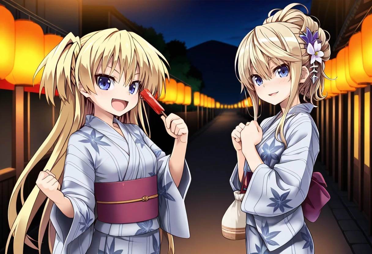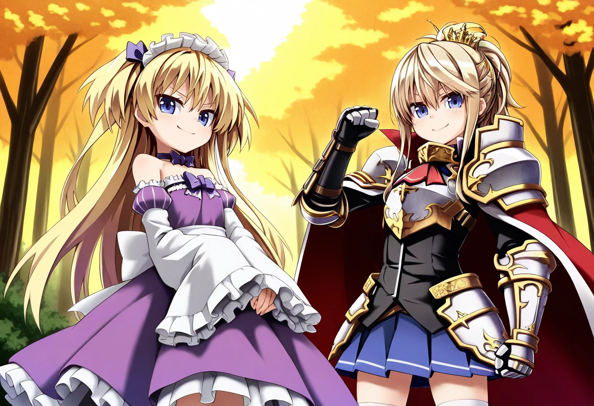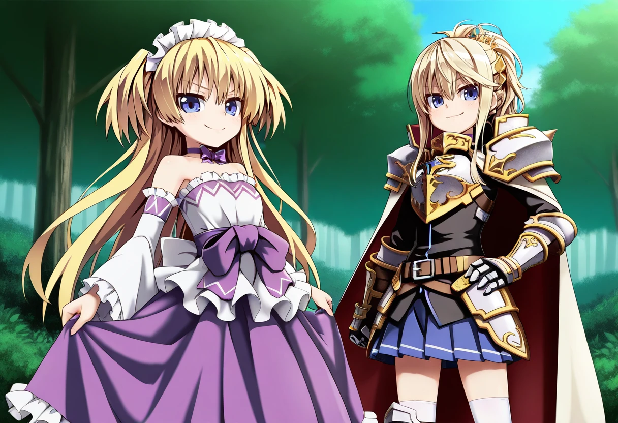 二人同時に出すときはblonde hair, blue eyes, small breasrs, 等プロンプトで特徴を強調してください。