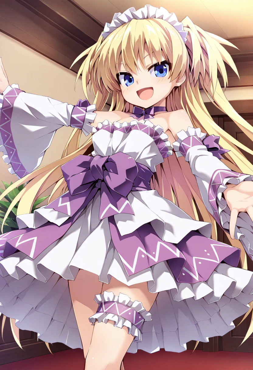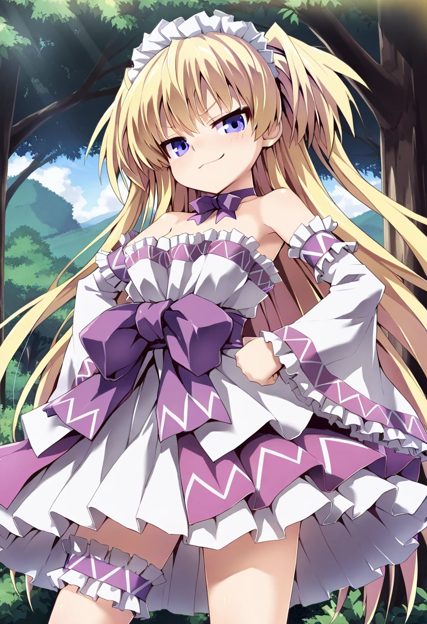 dress, ribbon, choker, headdress, frills, bare shoulders, detached sleeves, bridal garter