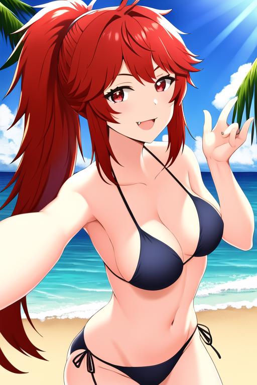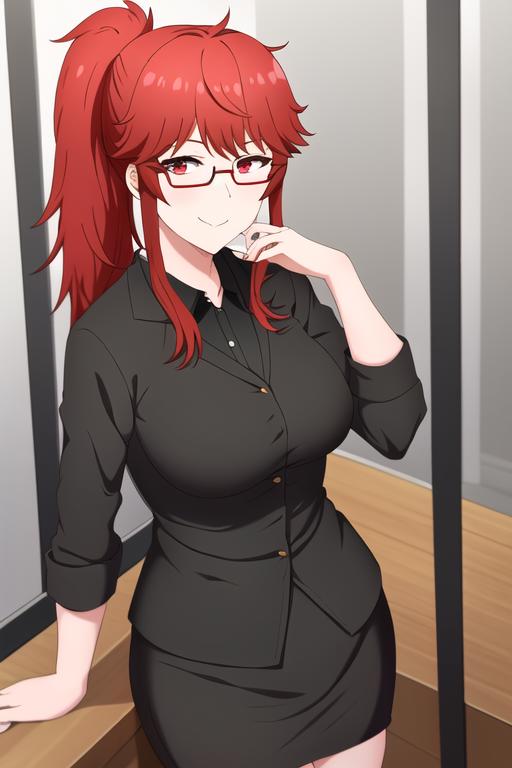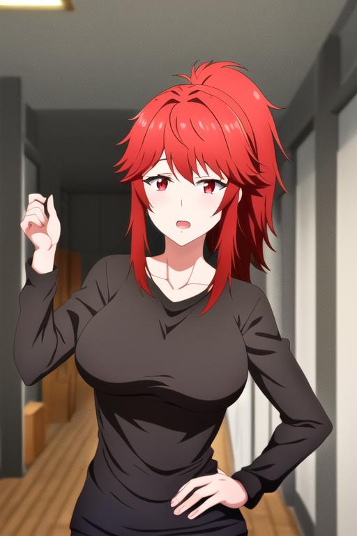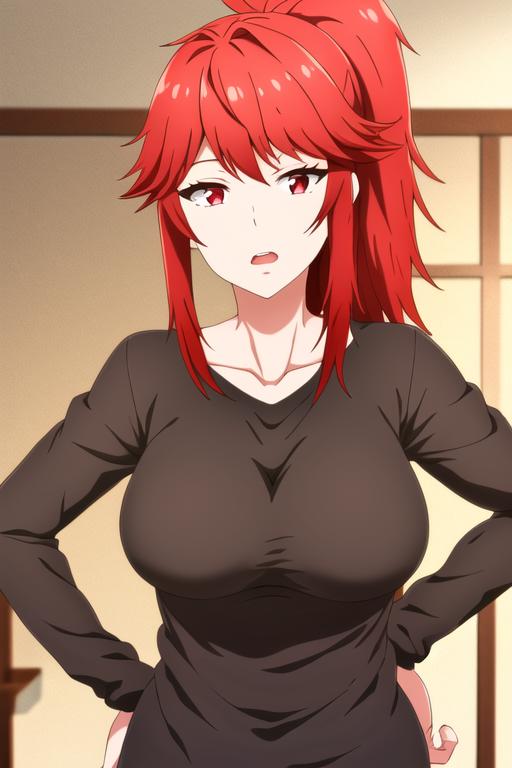 aizawa_akemi, 1girl, red eyes, red hair, ponytailFollow me on Twitter(X): TakagiChikita