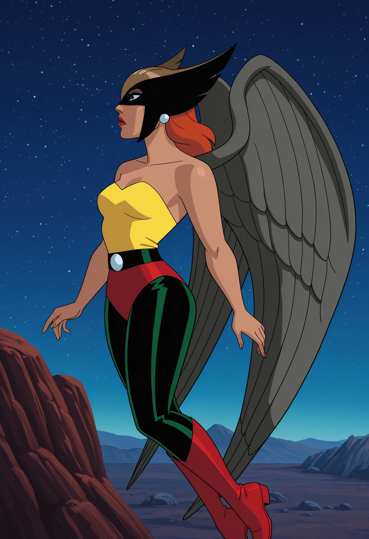 A Lora of Hawkgirl, Shayera Hol, from Justice League/Justice League Unlimited, American animated superhero television series produced by Warner Bros. Animation with DC Comics.